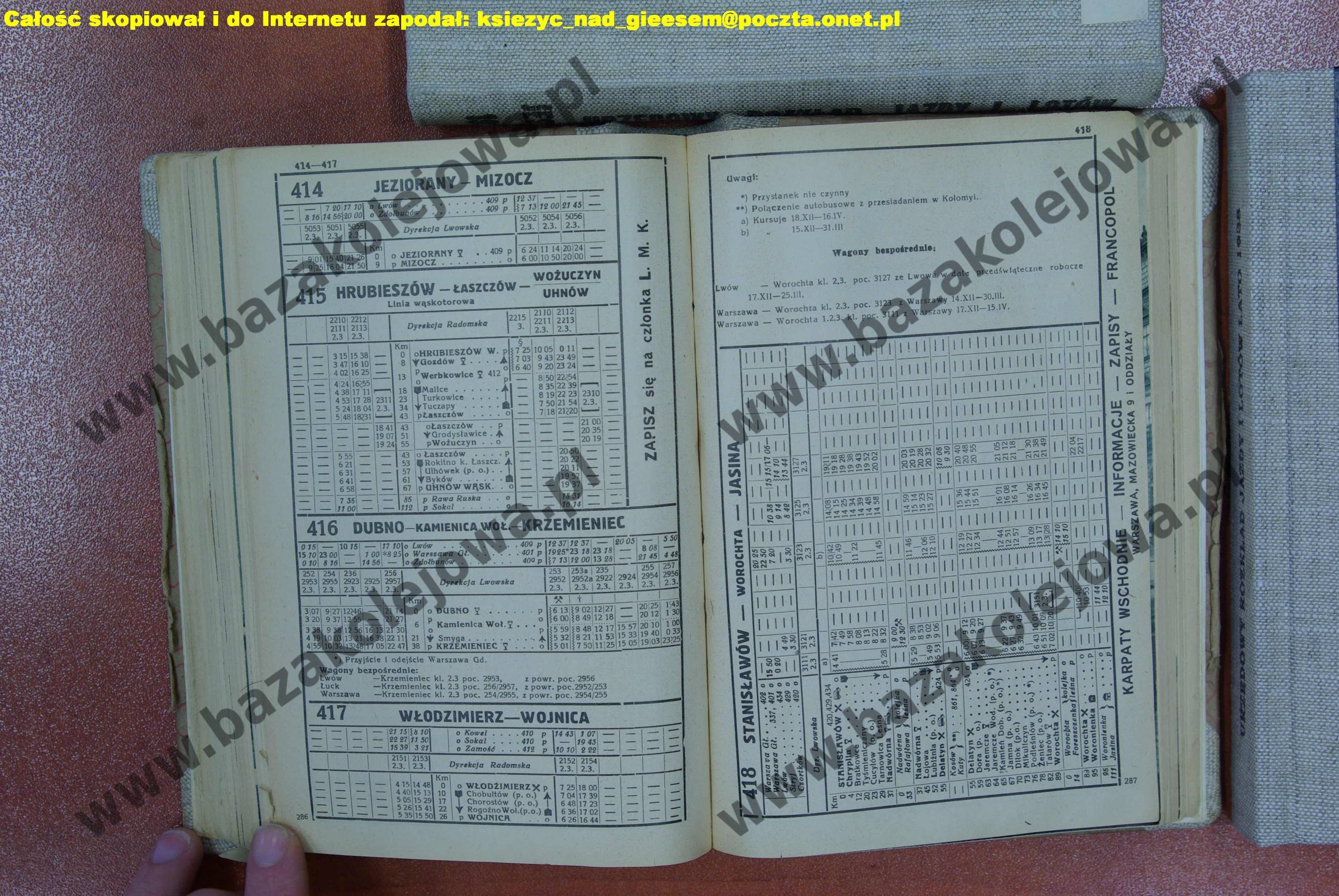 Rozkład Polska, zima 1938/1939, Str. 286-287, Tab. 414, 415, 416, 417, 418