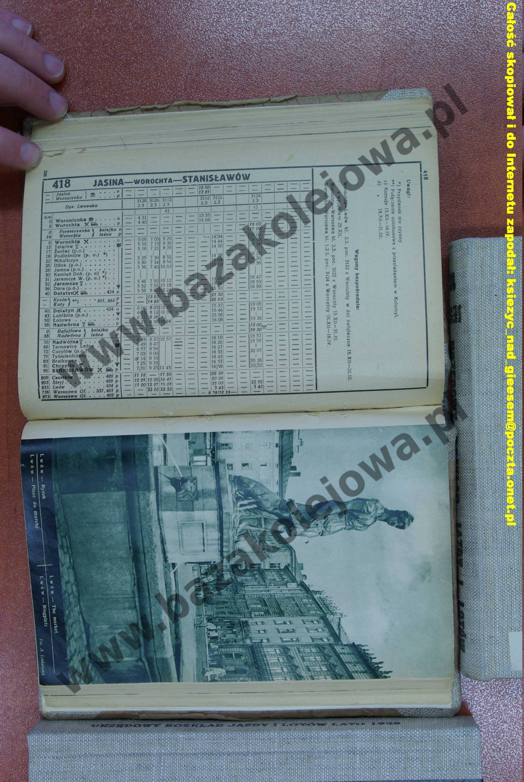 Rozkład Polska, zima 1938/1939, Str. 288, Tab. 418