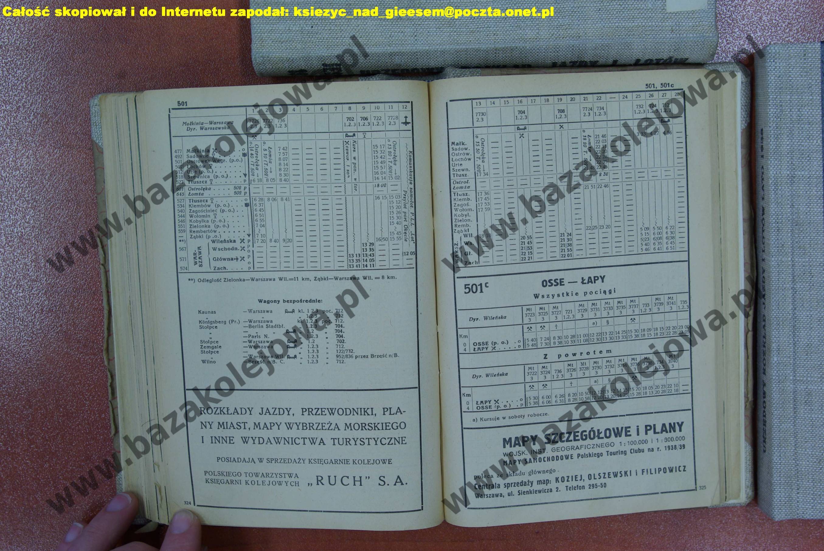 Rozkład Polska, zima 1938/1939, Str. 324-325, Tab. 501, 501c