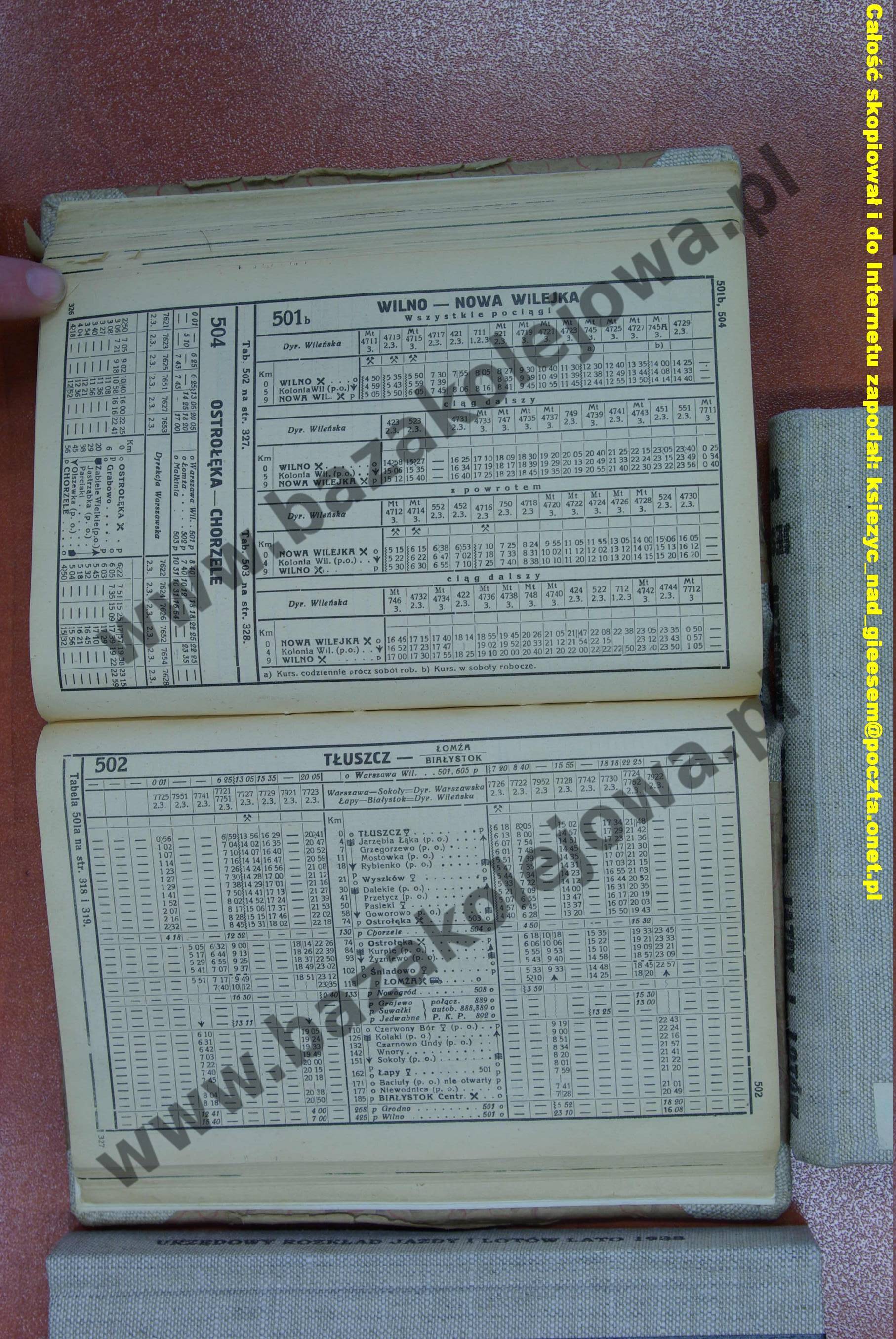 Rozkład Polska, zima 1938/1939, Str. 326-327, Tab. 501b, 502, 504
