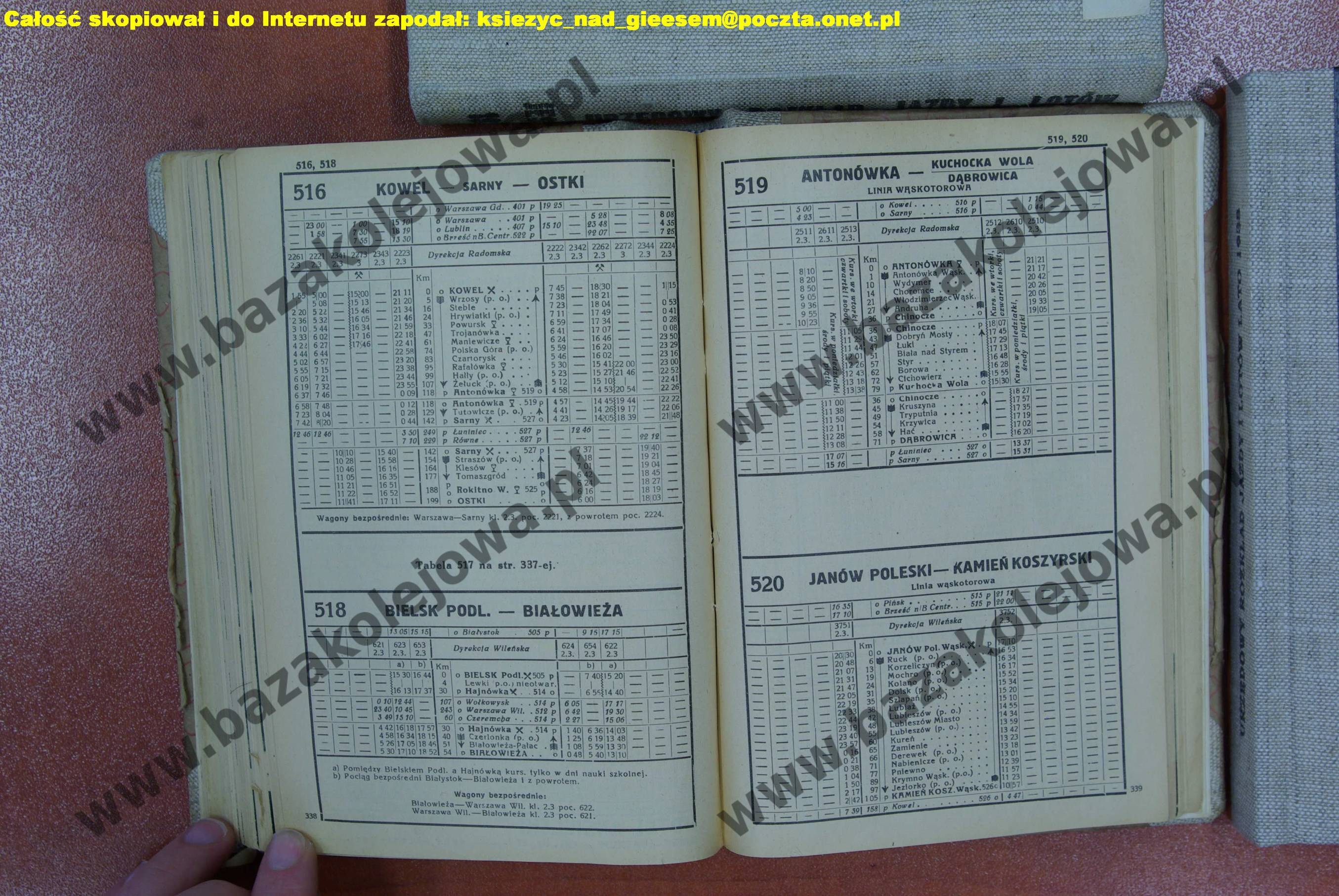 Rozkład Polska, zima 1938/1939, Str. 338-339, Tab. 516, 518, 519, 520