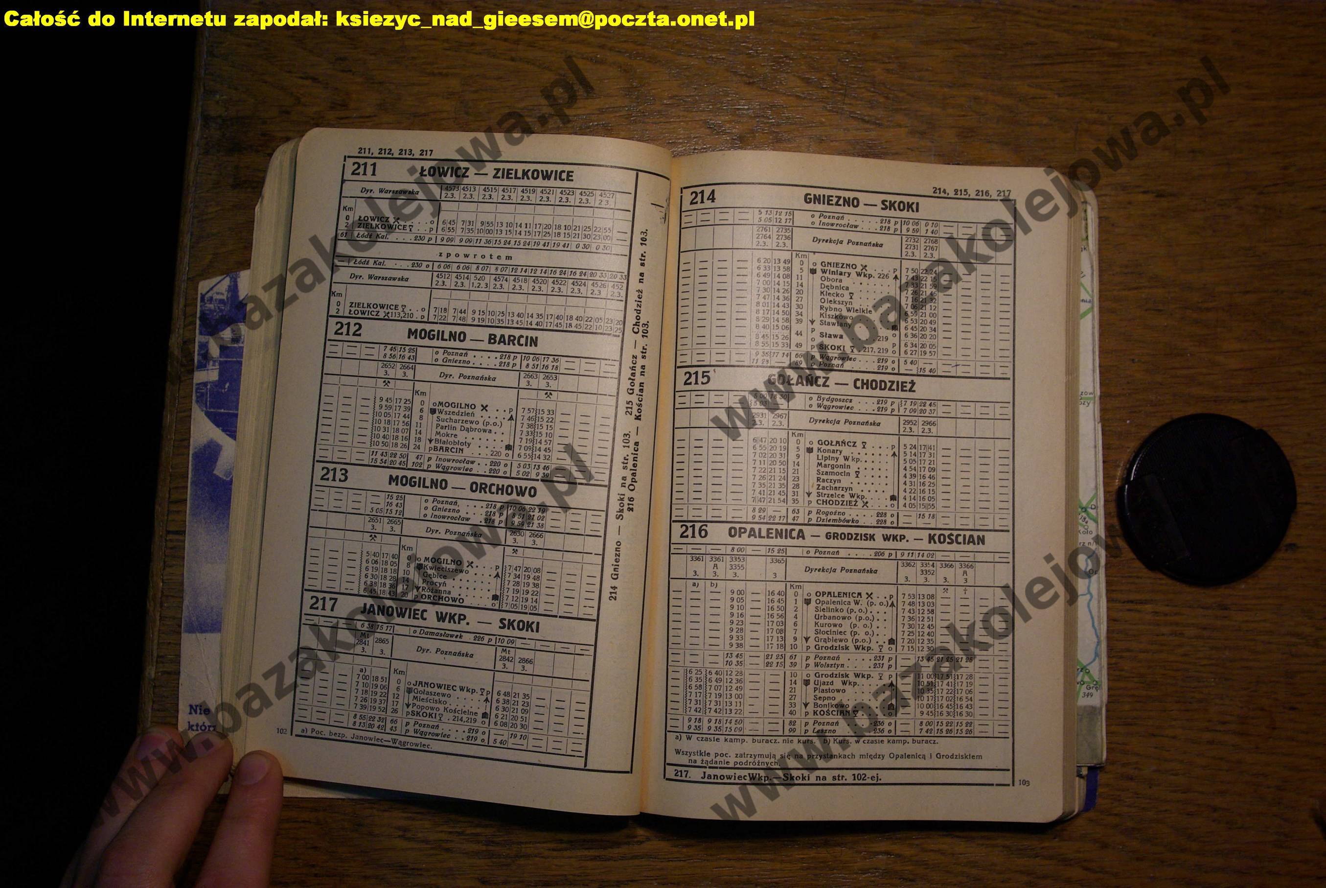 Rozkład Polska, zima 1937/1938, Str. 102-103, Tab. 211, 212, 213, 214, 215, 216, 217