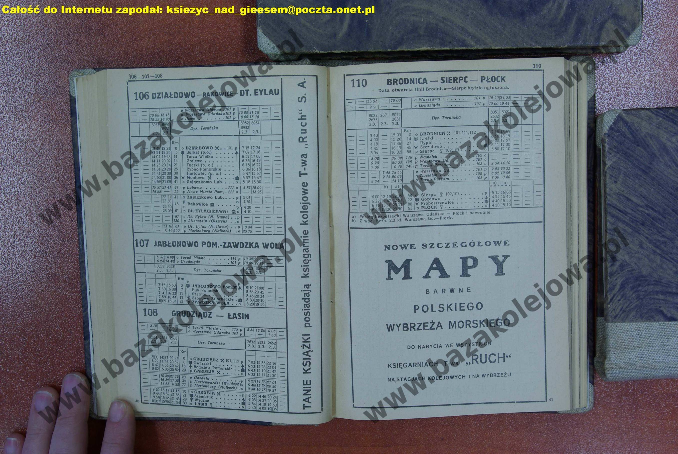 Rozkład Polska, jesień 1937, Str. 40-41, Tab. 106, 107, 108, 110