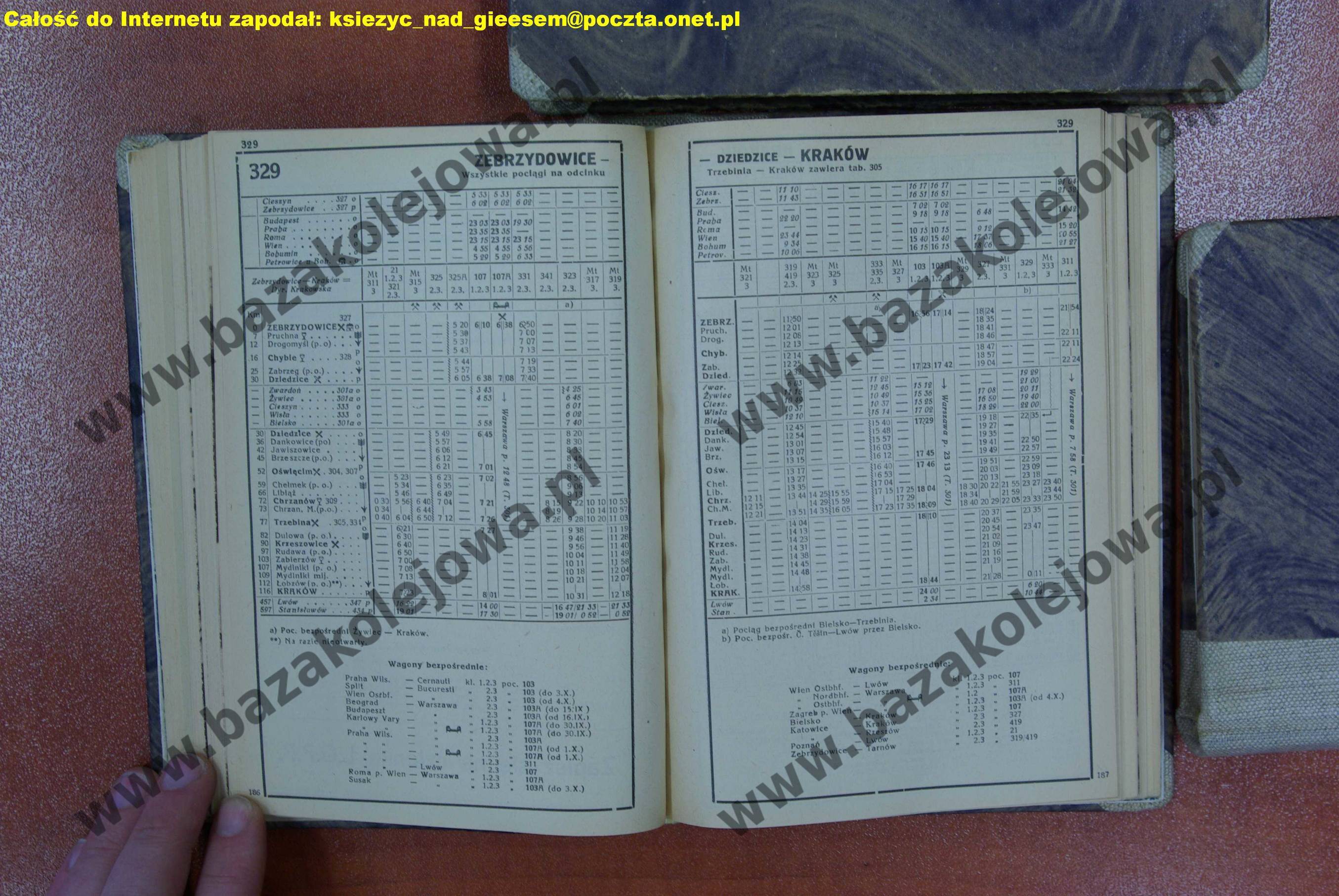 Rozkład Polska, jesień 1937, Str. 186-187, Tab. 329
