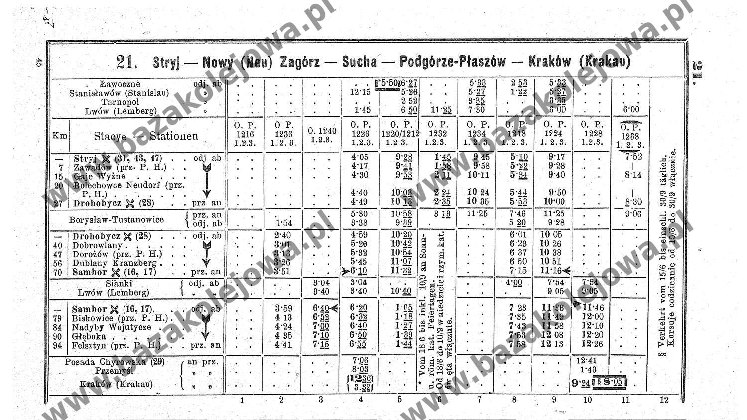 Kraków (Krakau) – Podgórze Płaszów – Sucha – Nowy (Neu) Zagórz – Stryj
