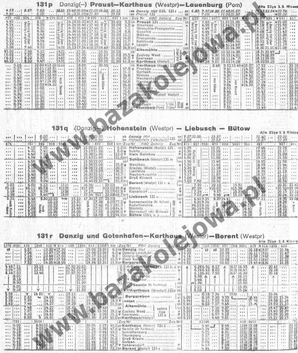 131r: Danzig und Gotenhafen – Karthaus (Westpr) – Berent (Westpr) | Linie w tabeli »