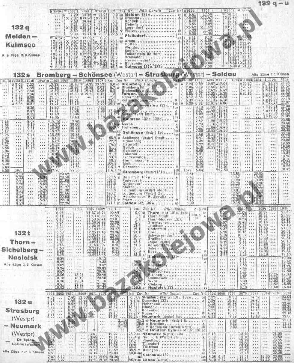 132s: Bromberg – Schönsee (Westpr) – Strasburg (Westpr) – Soldau | Linie w tabeli »