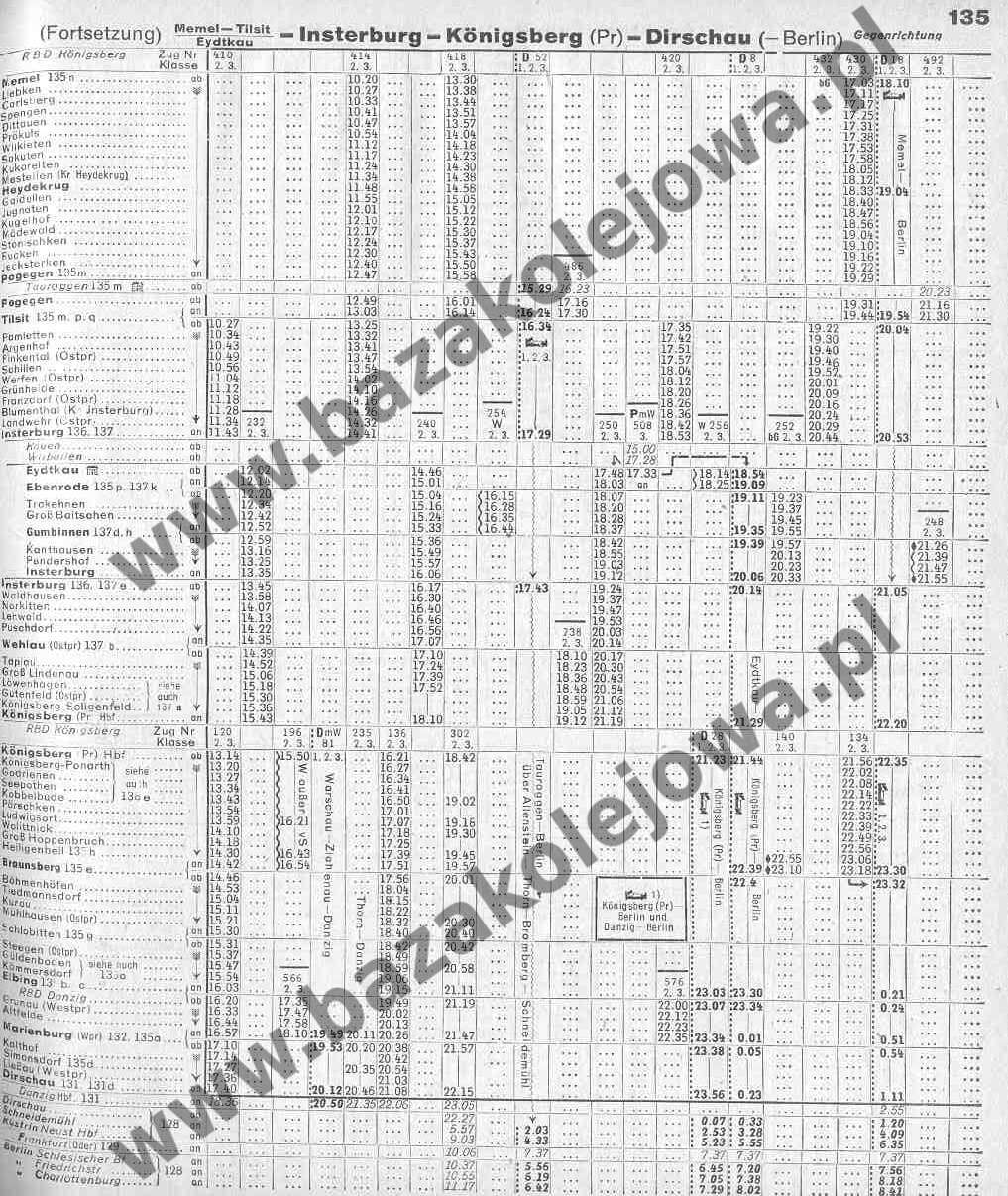 135: (Memel – Tilsit)/Eydtkau – Insterburg – Königsberg (pr) – Dirschau (– Berlin) | Linie w tabeli »