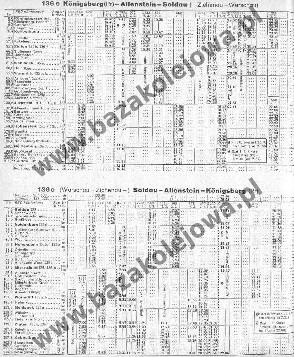 136e: Königsberg (Pr) – Allenstein – Soldau (– Zichenau – Warschau) | Linie w tabeli »