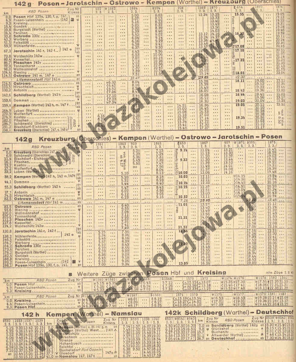 142g: Posen – Jarotshin – Kempen (Warthel) – Kreuzburg (Oberschles) | Linie w tabeli »