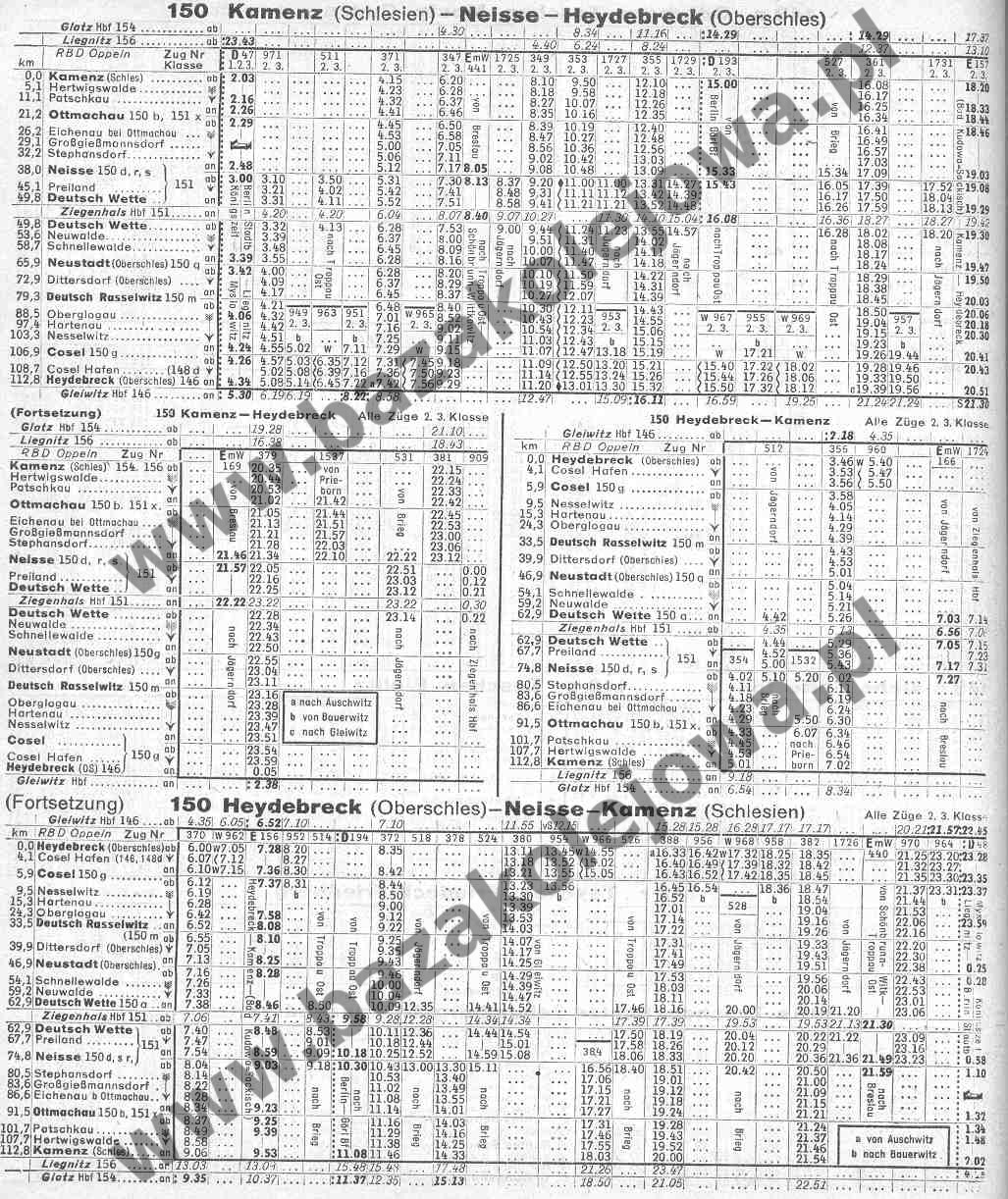 150: Kammenz (Schlesien) – Neisse – Heydebreck (Oberschles) | Linie w tabeli »