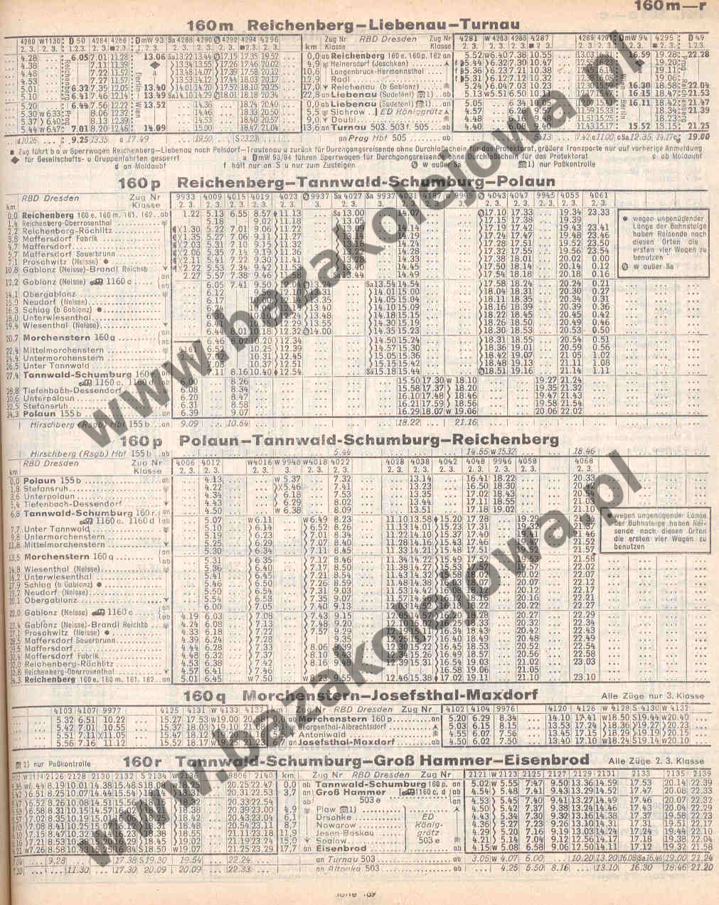 Rozkład III Rzesza 1944/1945, część 1, Tab. 160m, 160n, 160p, 160q, 160r