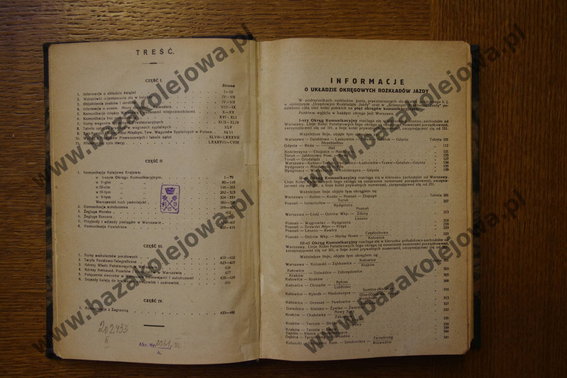 - Str. 360-361, VI okręg komunikacyjny (mapka), tab. 601