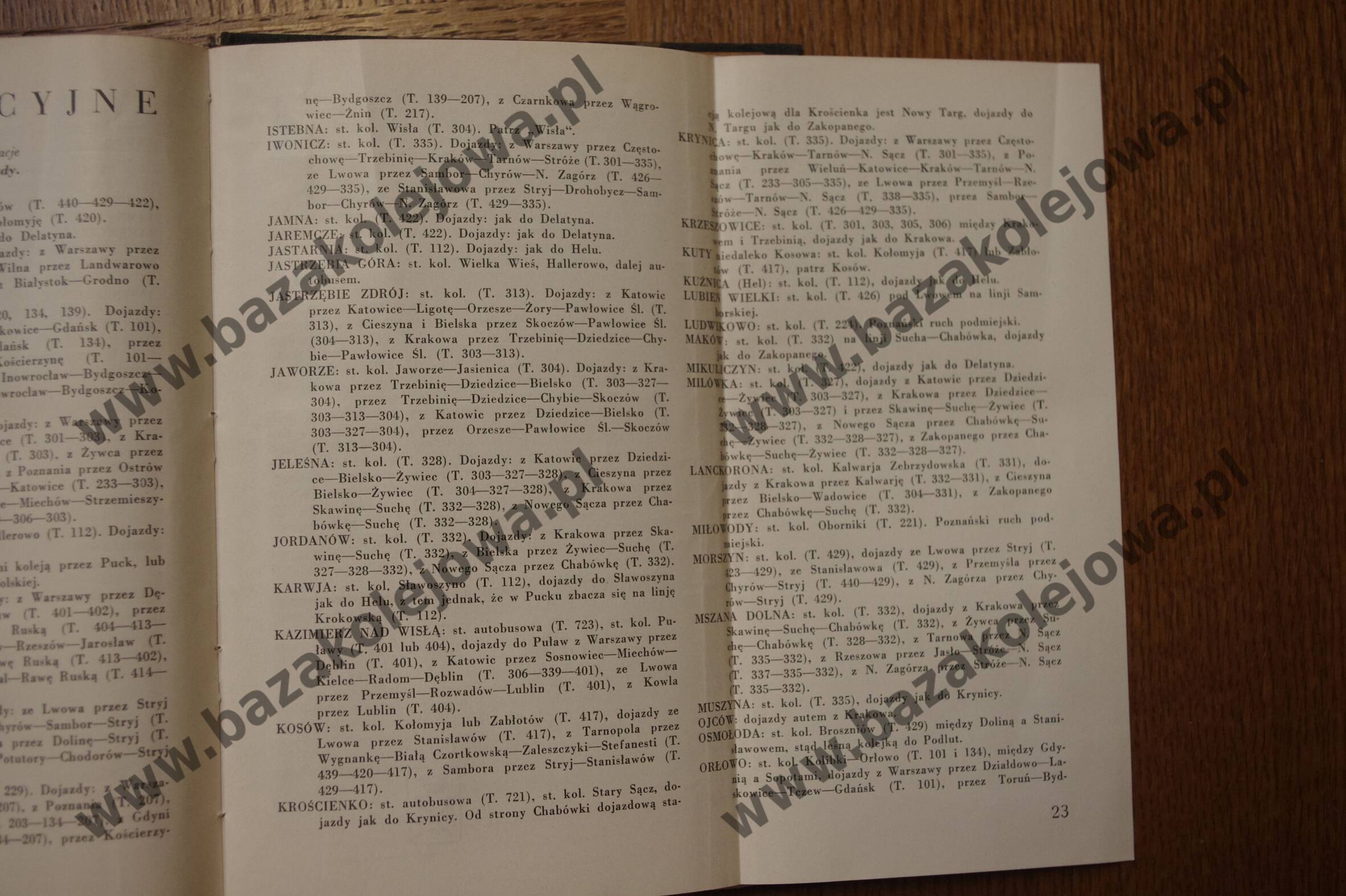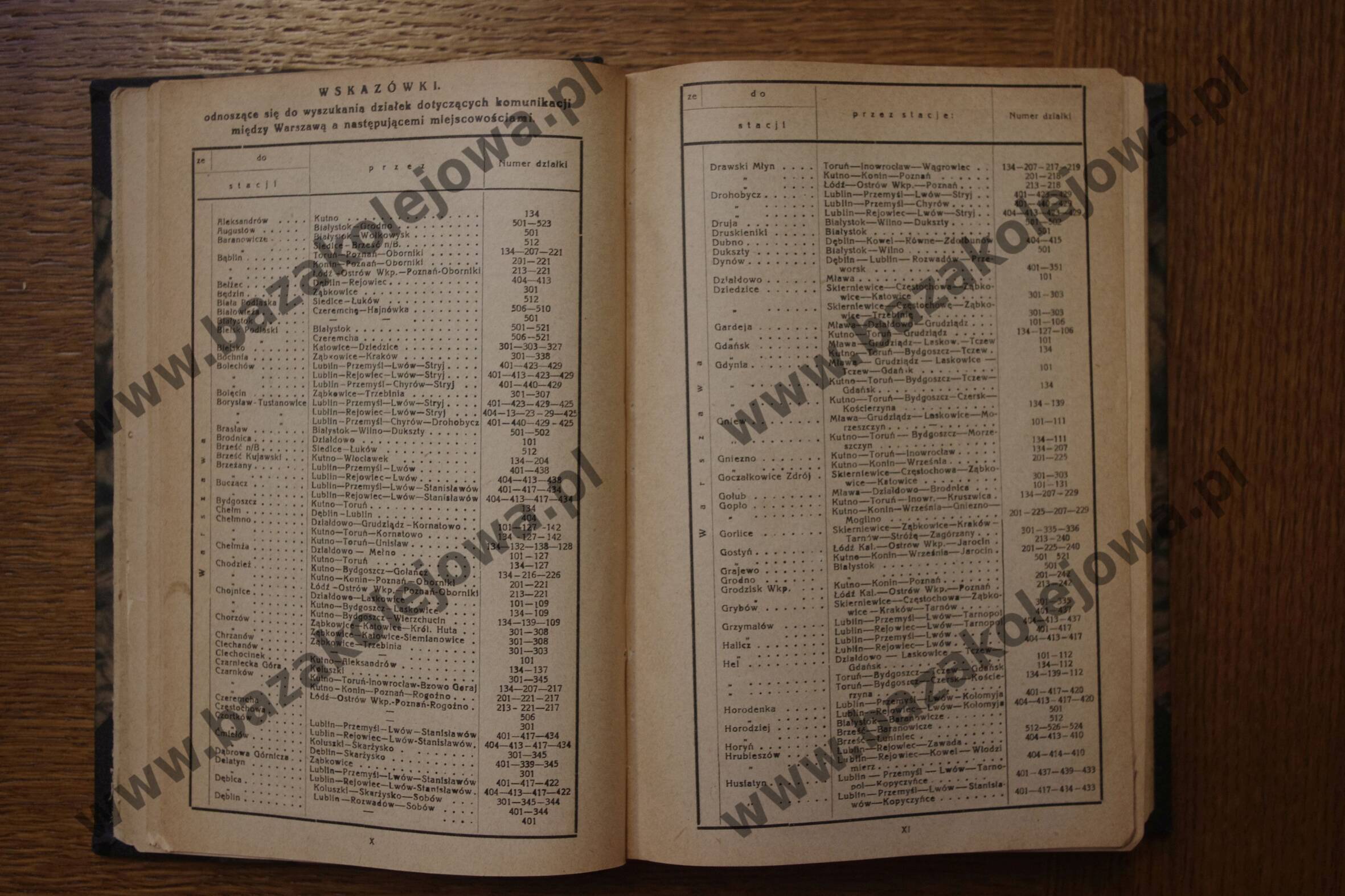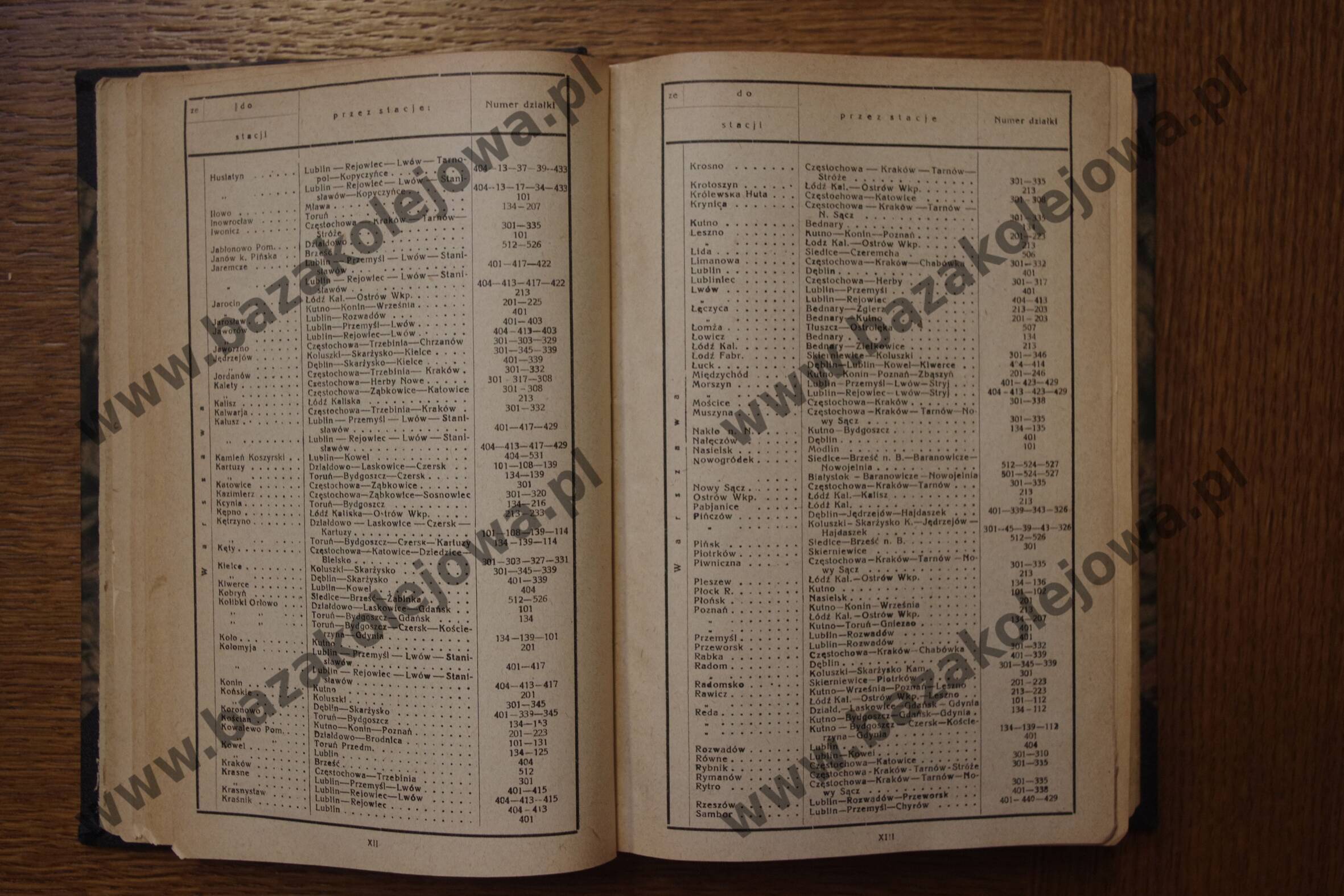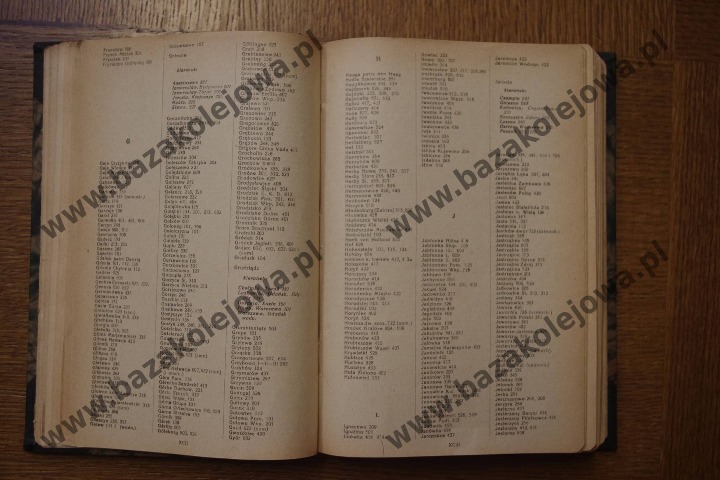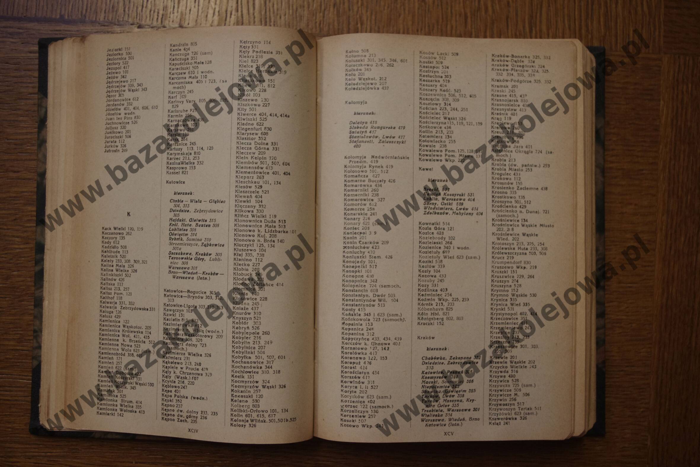 - Str. XCIV-XCV, Alfabetyczny spis stacyj (Jez – Ksi)