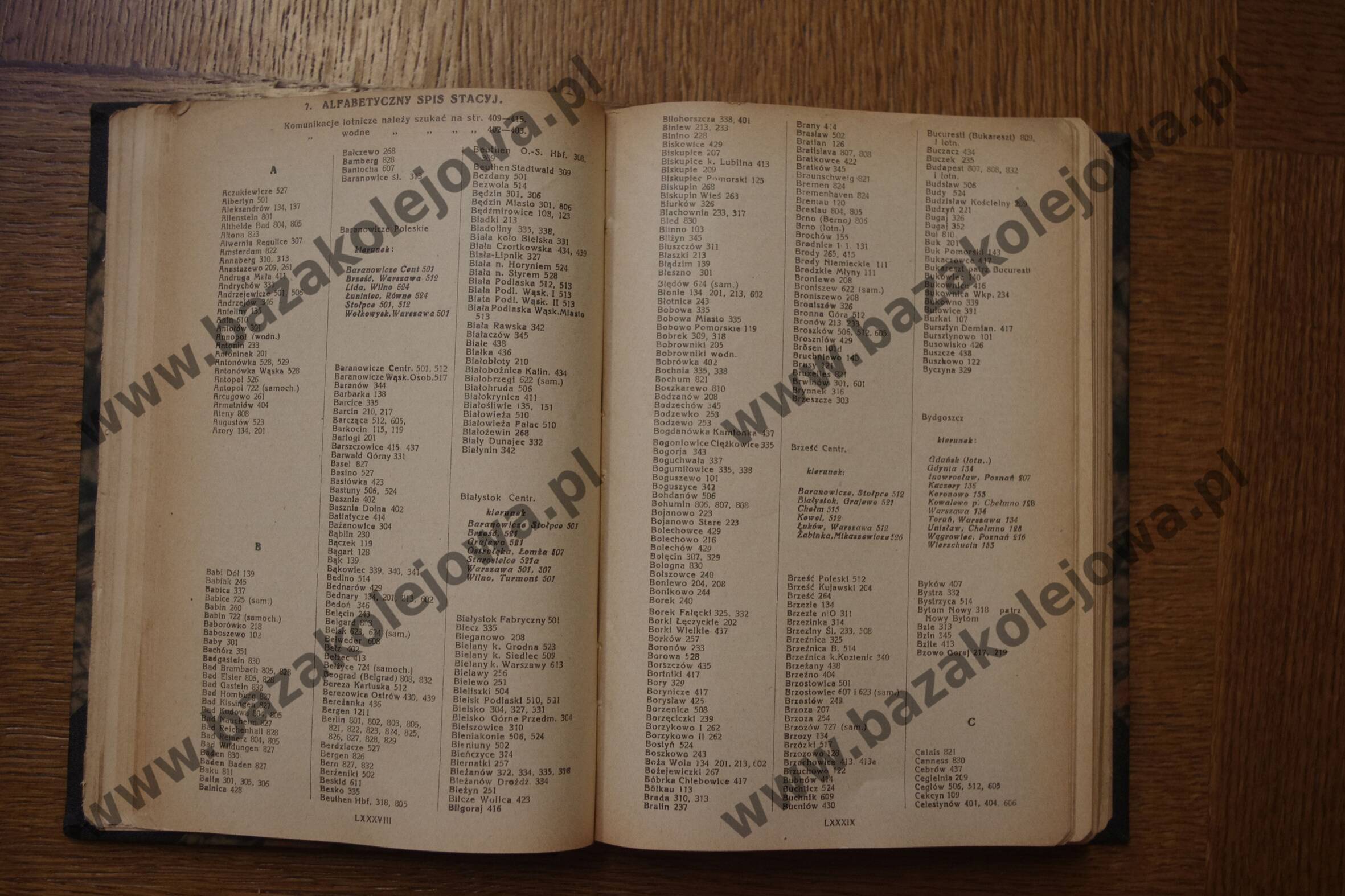 - Str. LXXXVIII-LXXXIX, Alfabetyczny spis stacyj (Acz – Cel)