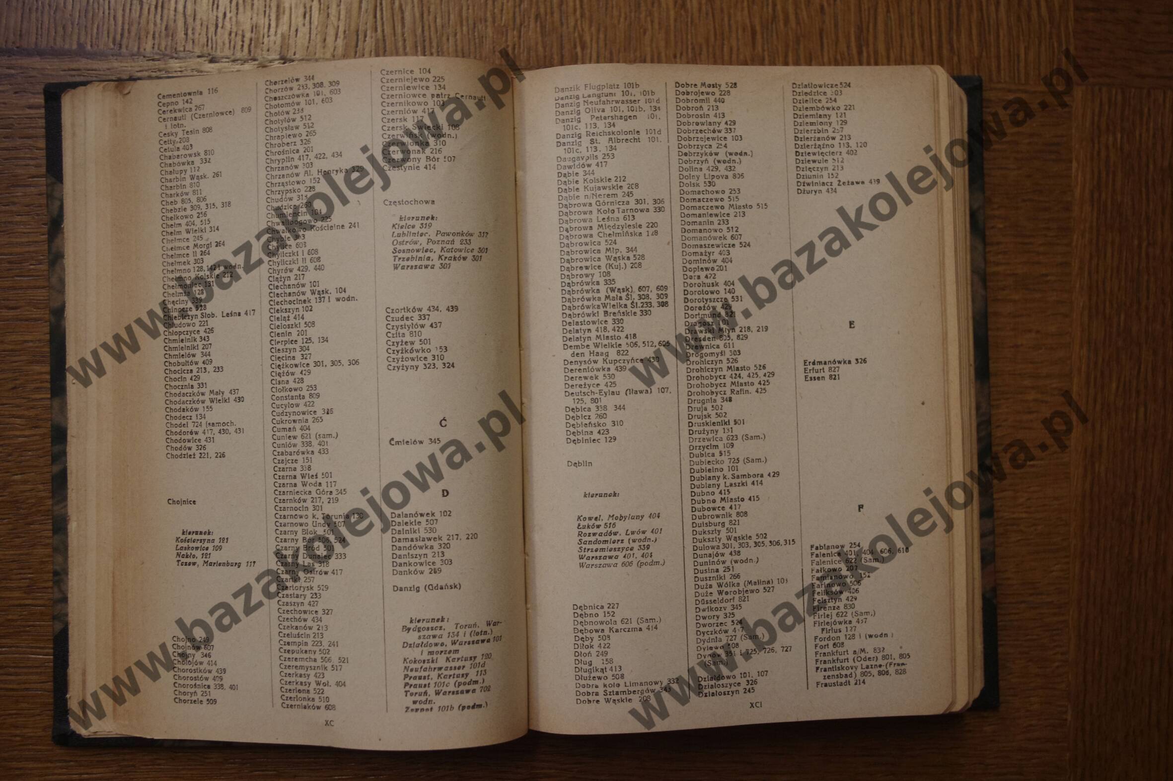 - Str. XC-XCI, Alfabetyczny spis stacyj (Cem – Fra)