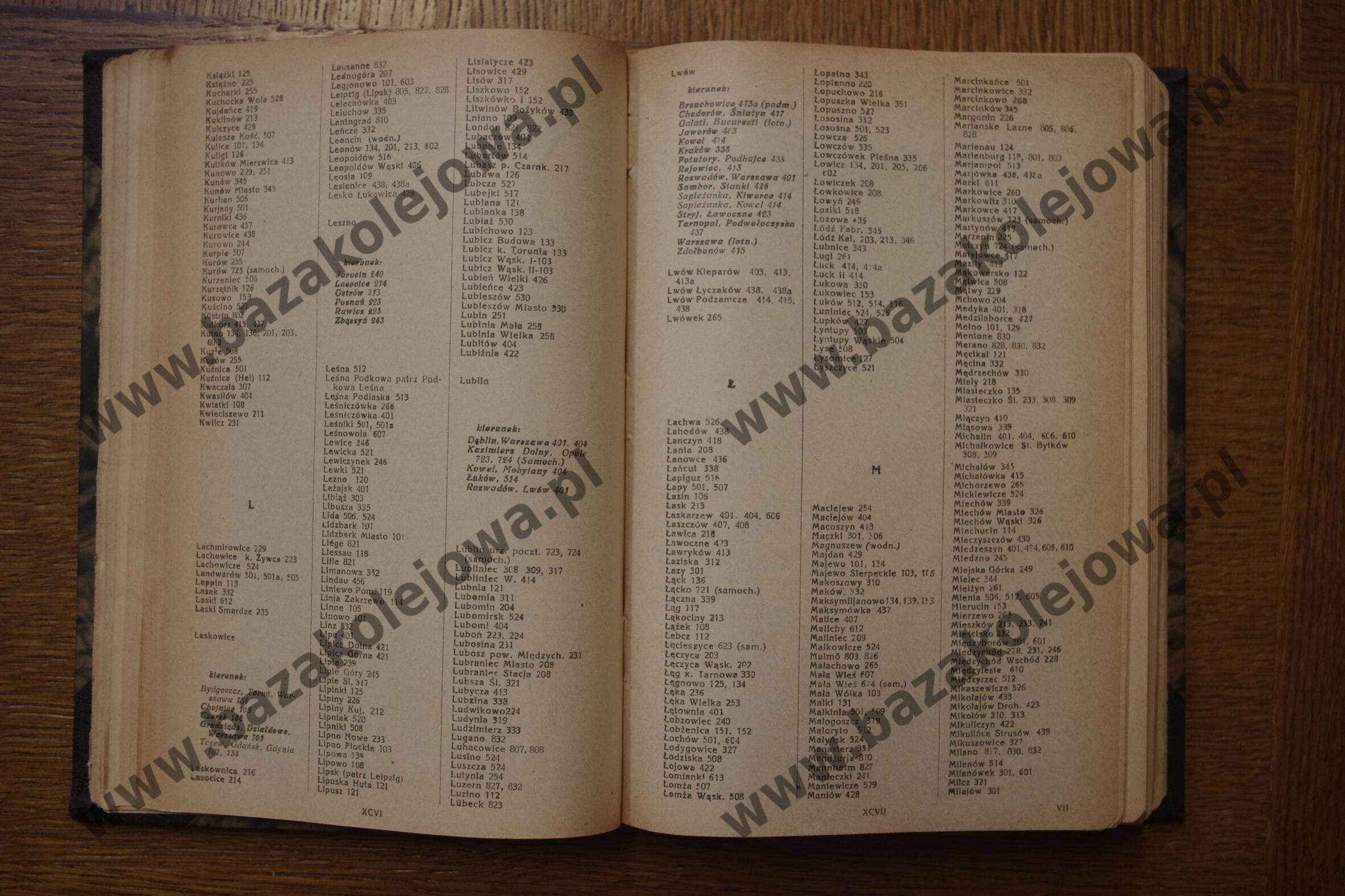 - Str. XCVI-XCVII, Alfabetyczny spis stacyj (Ksi – Mil)