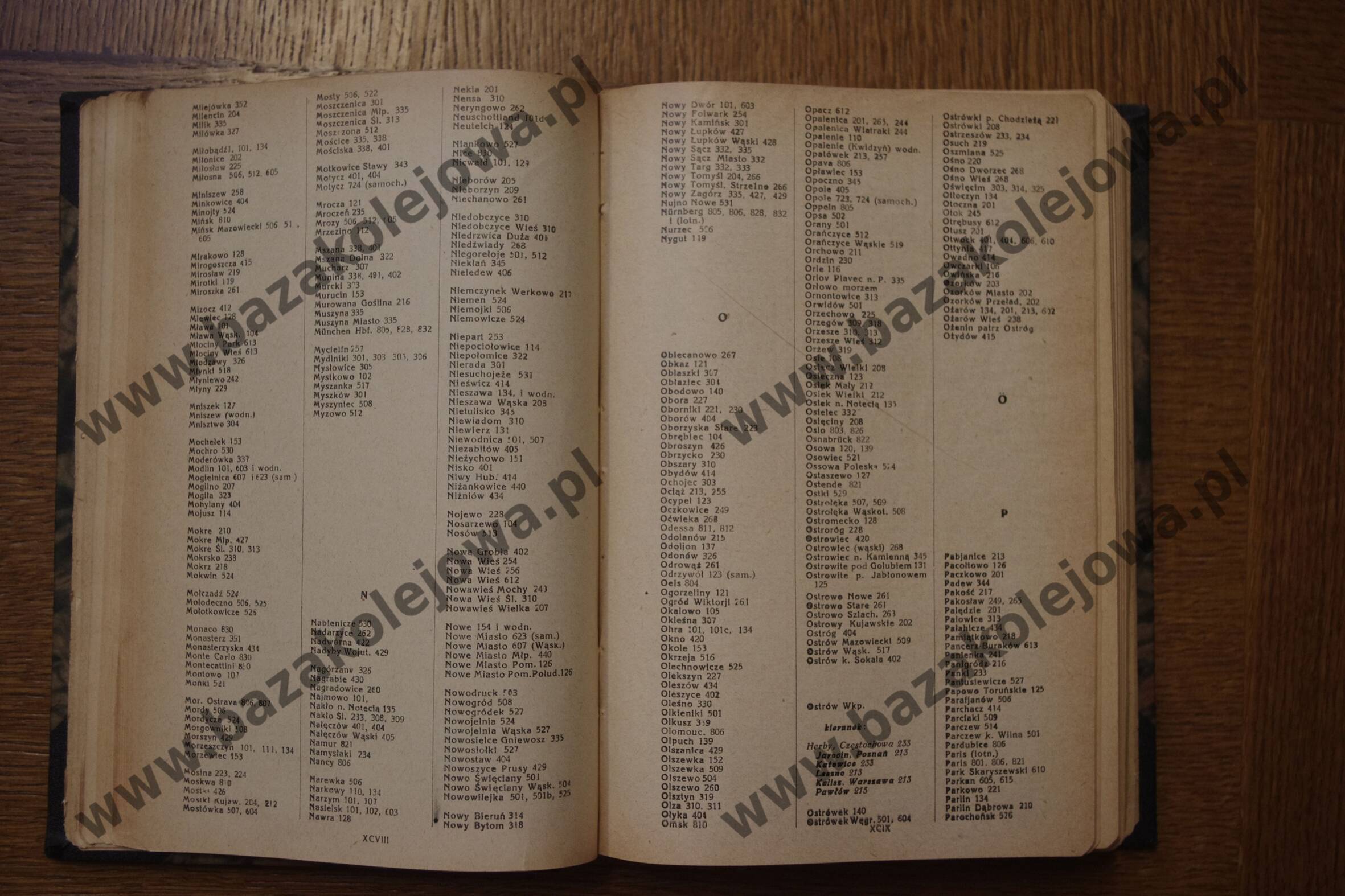 - Str. XCVIII-XCIX, Alfabetyczny spis stacyj (Mil – Par)
