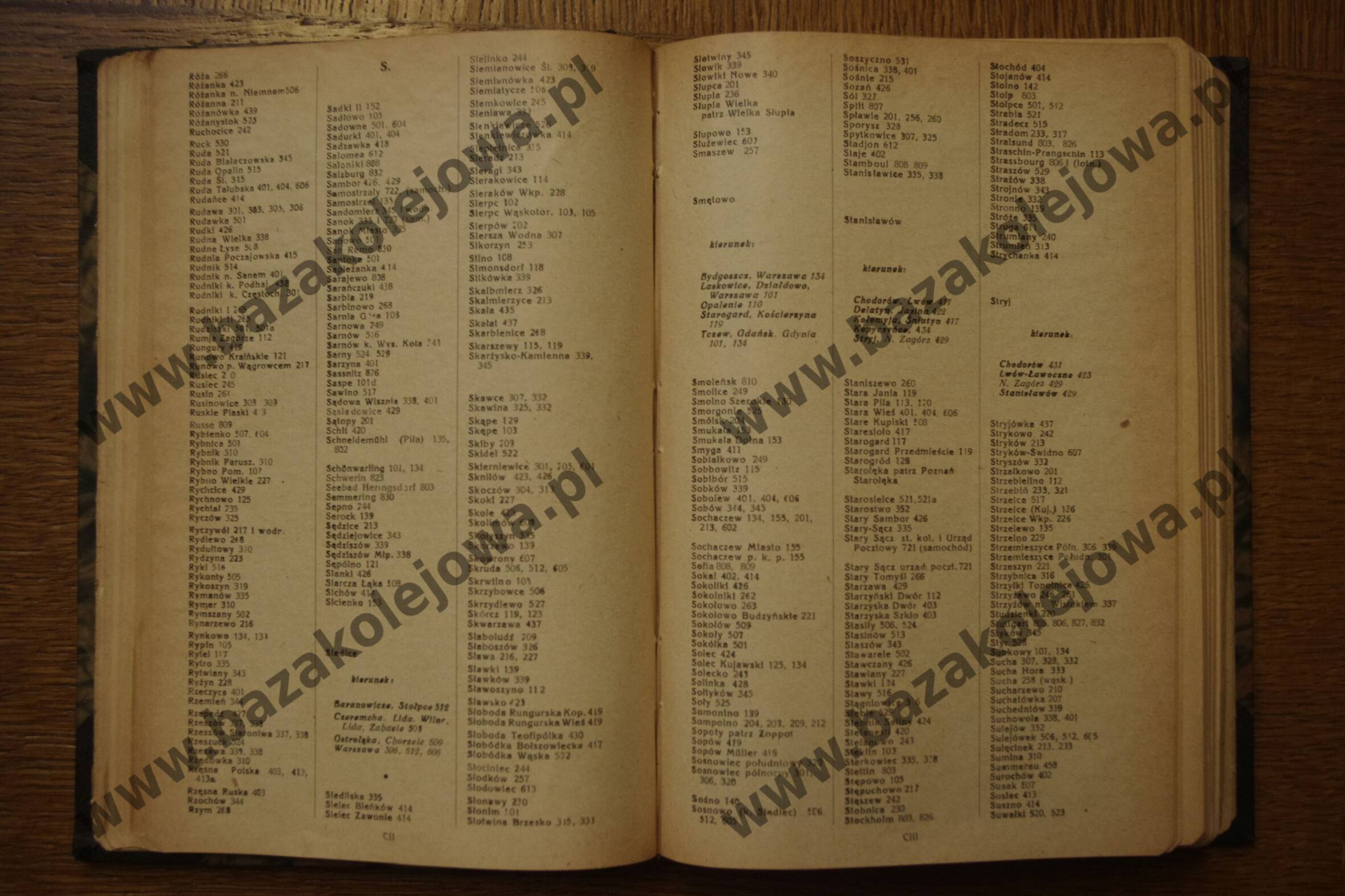 - Str. CII-CIII, Alfabetyczny spis stacyj (Róż – Suw)
