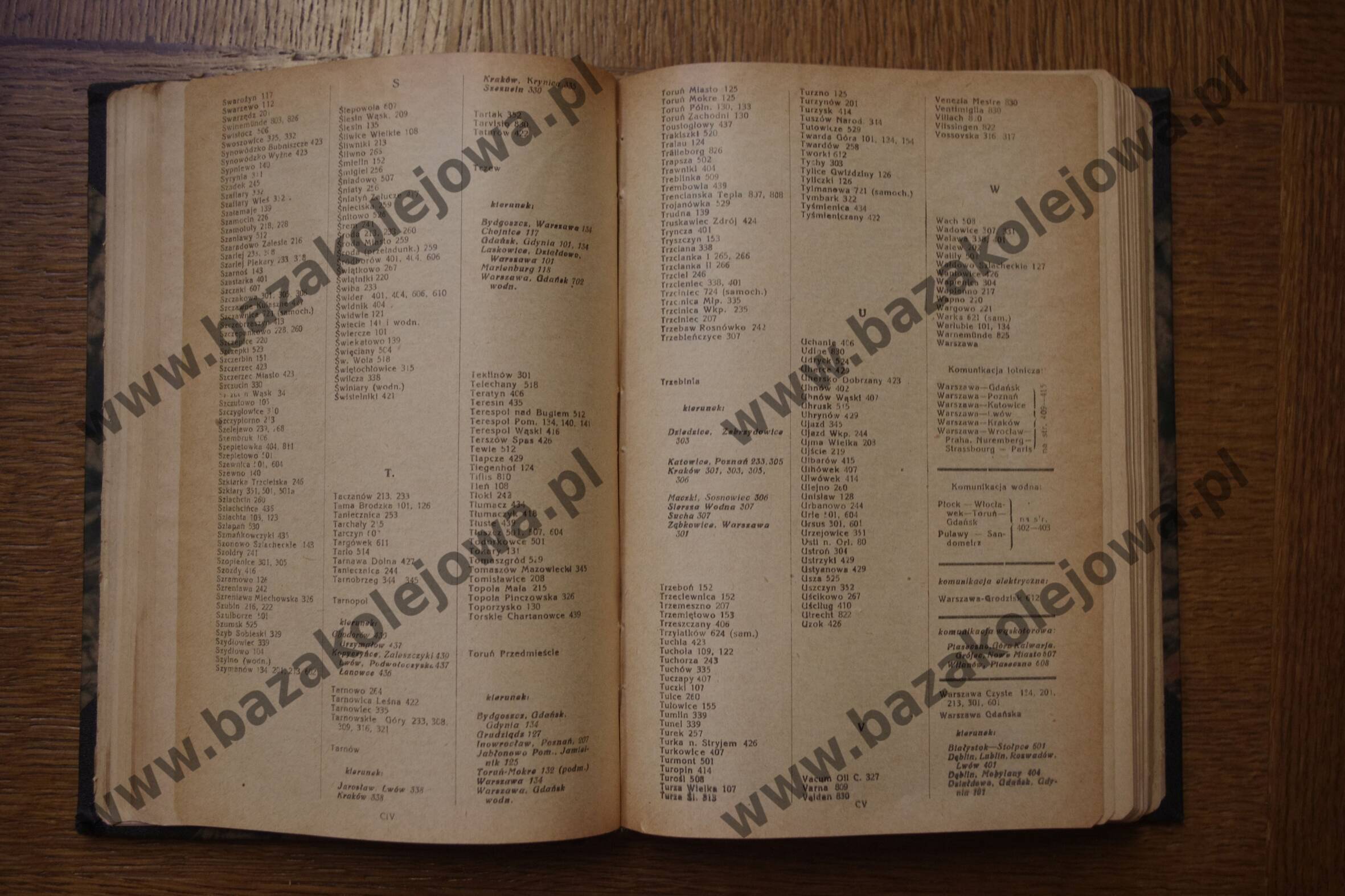 - Str. CIV-CV, Alfabetyczny spis stacyj (Swa – War)