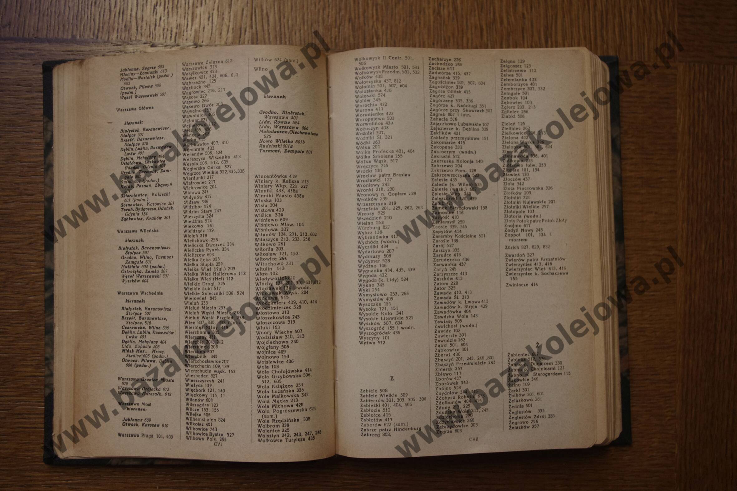 - Str. CVI-CVII, Alfabetyczny spis stacyj (War – Żel)