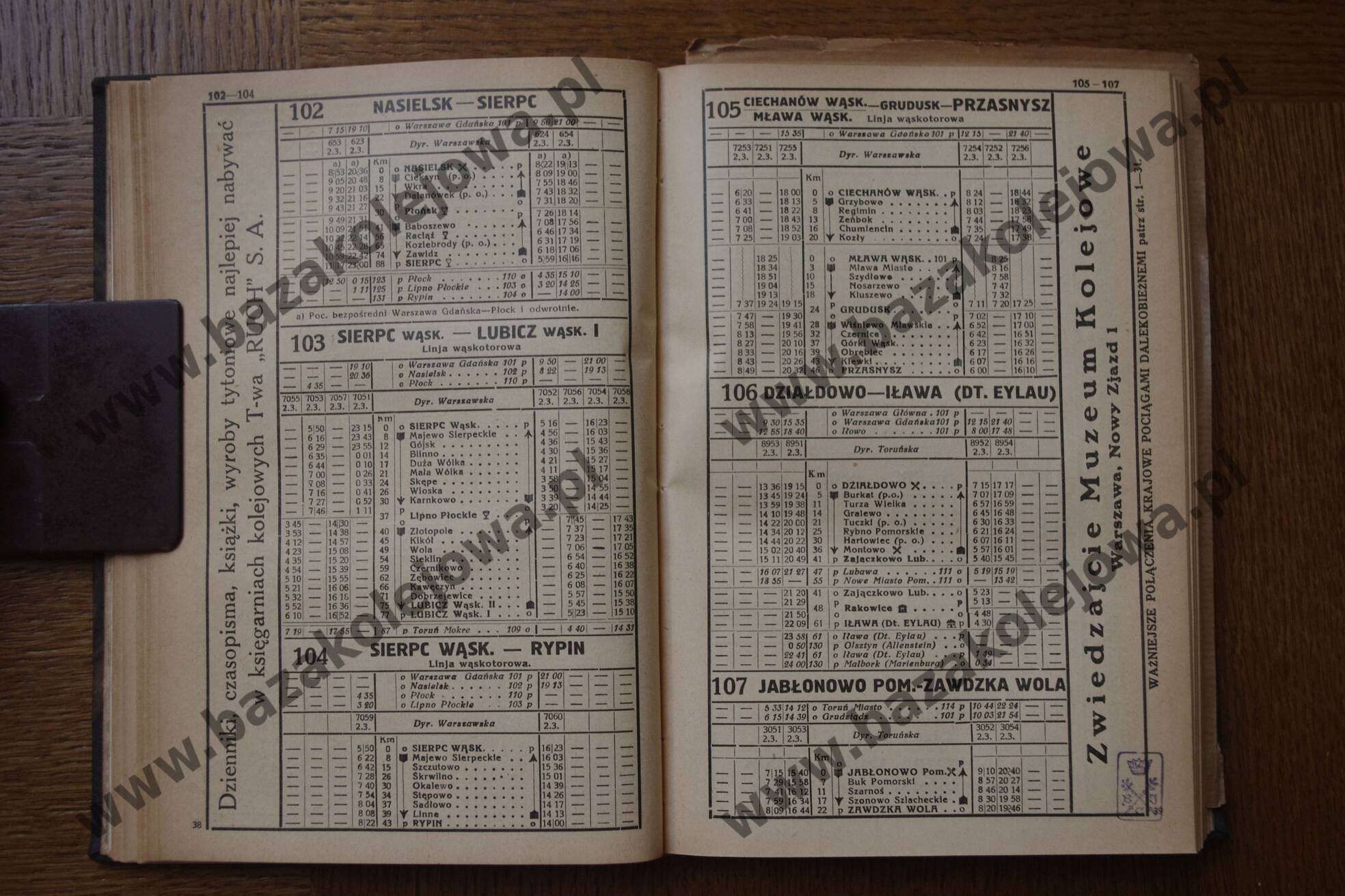 Rozkład Polska, jesień 1935, Str. 38-39, Tab. 102, 103, 104, 105, 106, 107
