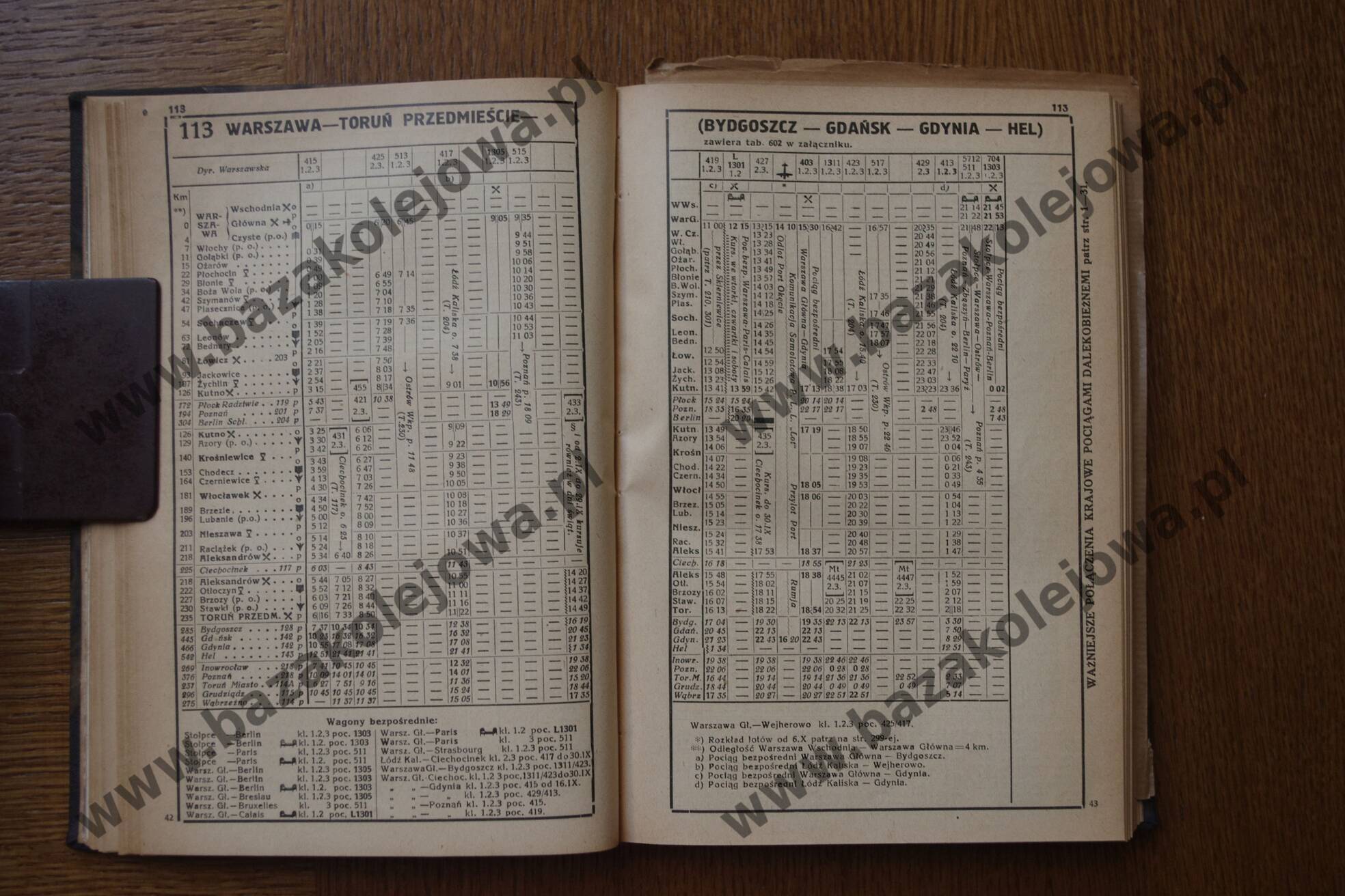 Rozkład Polska, jesień 1935, Str. 42-43, Tab. 113