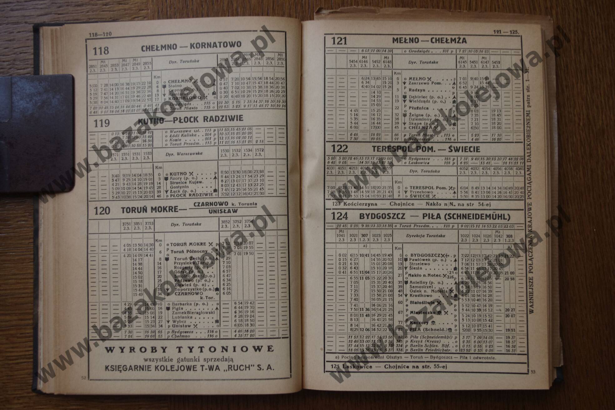 Rozkład Polska, jesień 1935, Str. 52-53, Tab. 118, 119, 120, 121, 122, 124