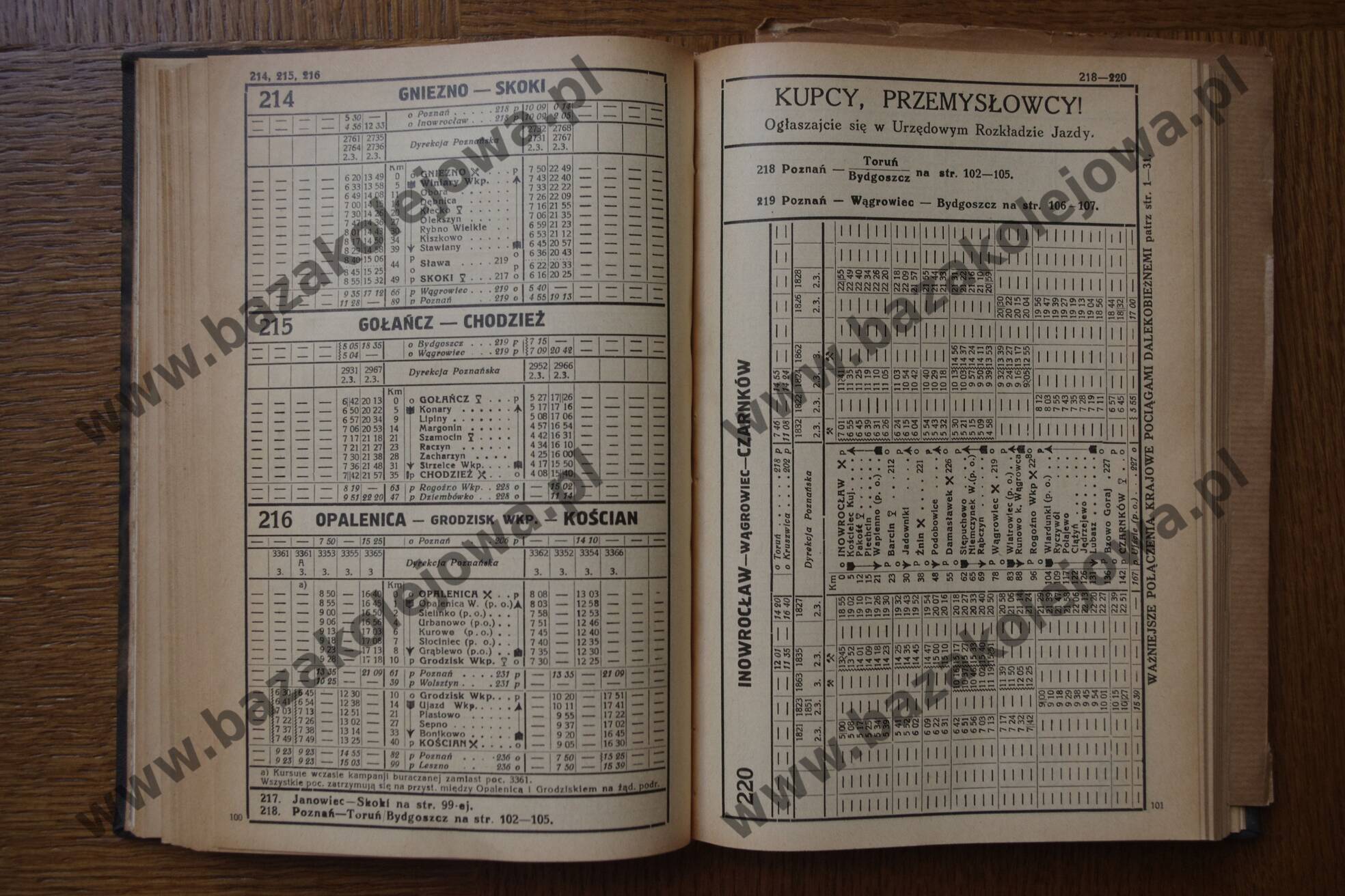 Rozkład Polska, jesień 1935, Str. 100-101, Tab. 214, 215, 216, 220