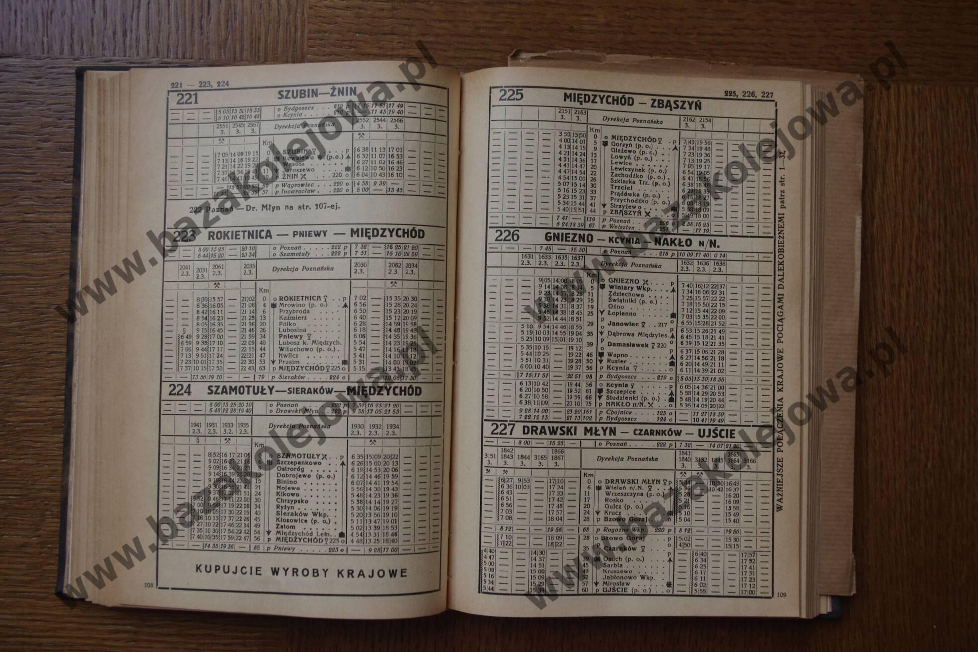 Rozkład Polska, jesień 1935, Str. 108-109, Tab. 221, 223, 224, 225, 226, 227