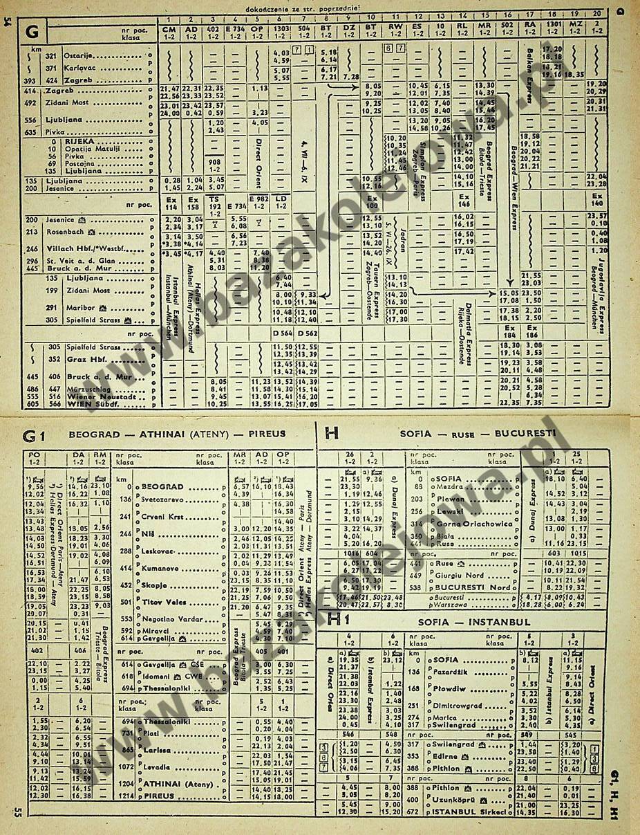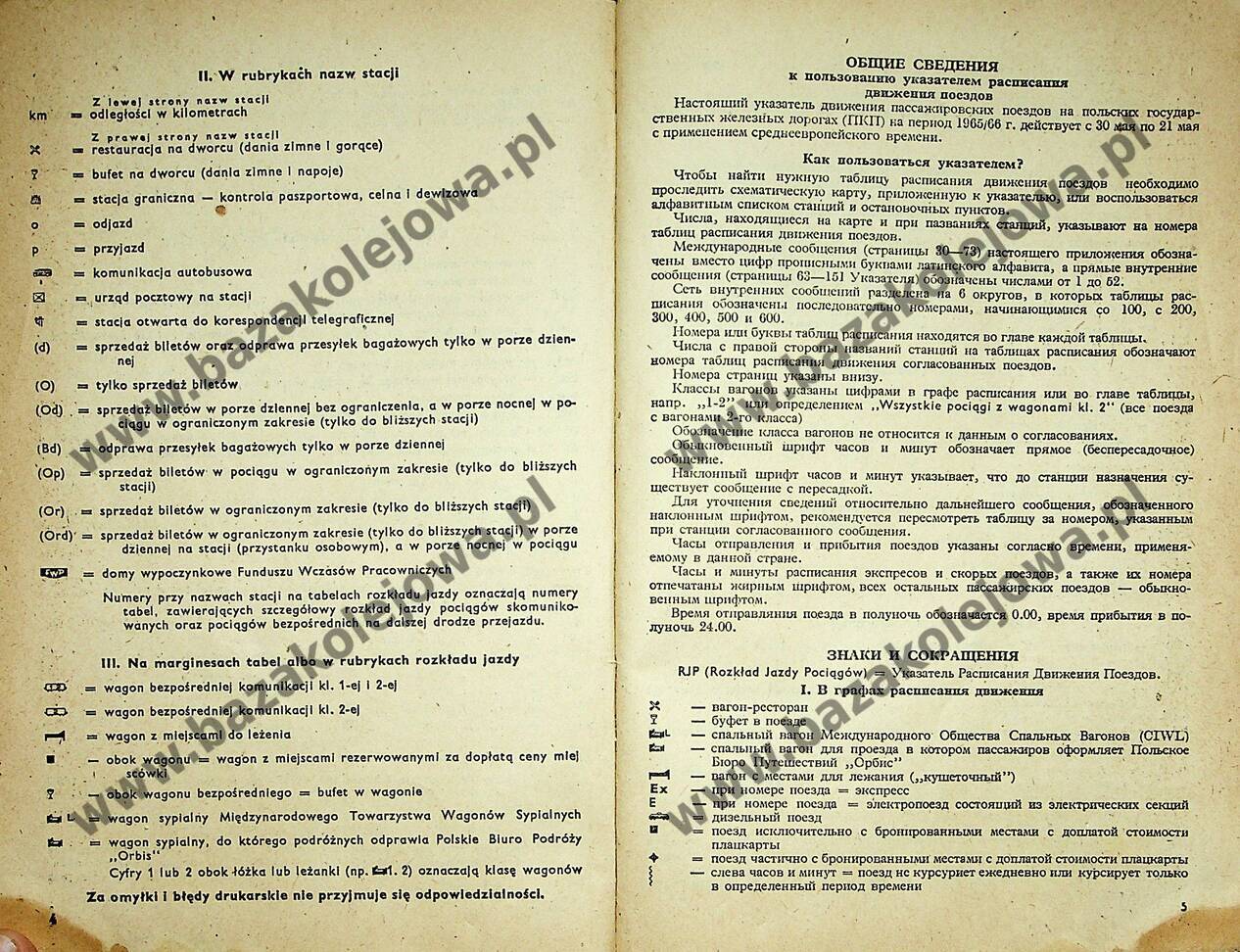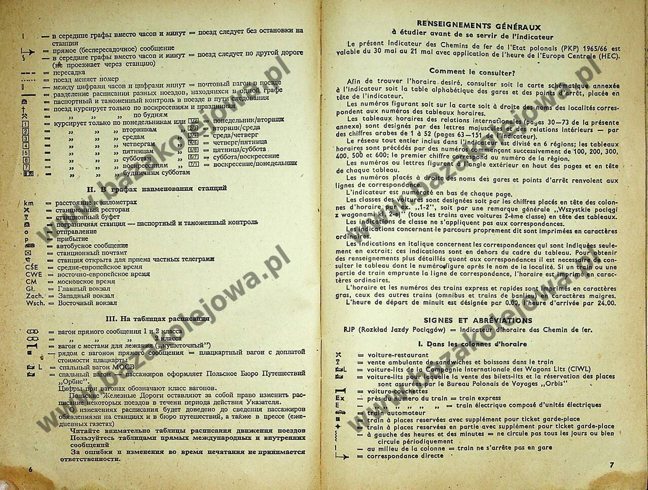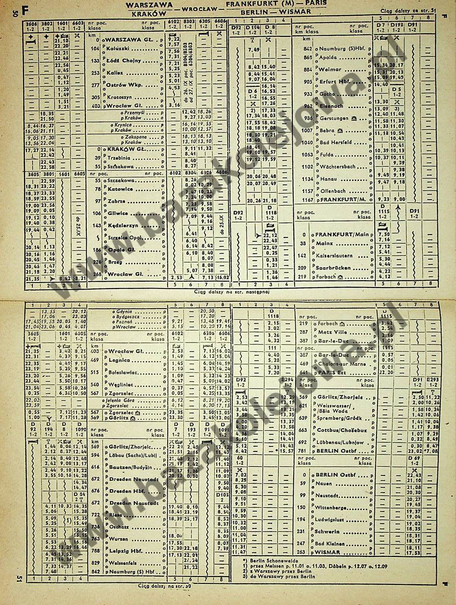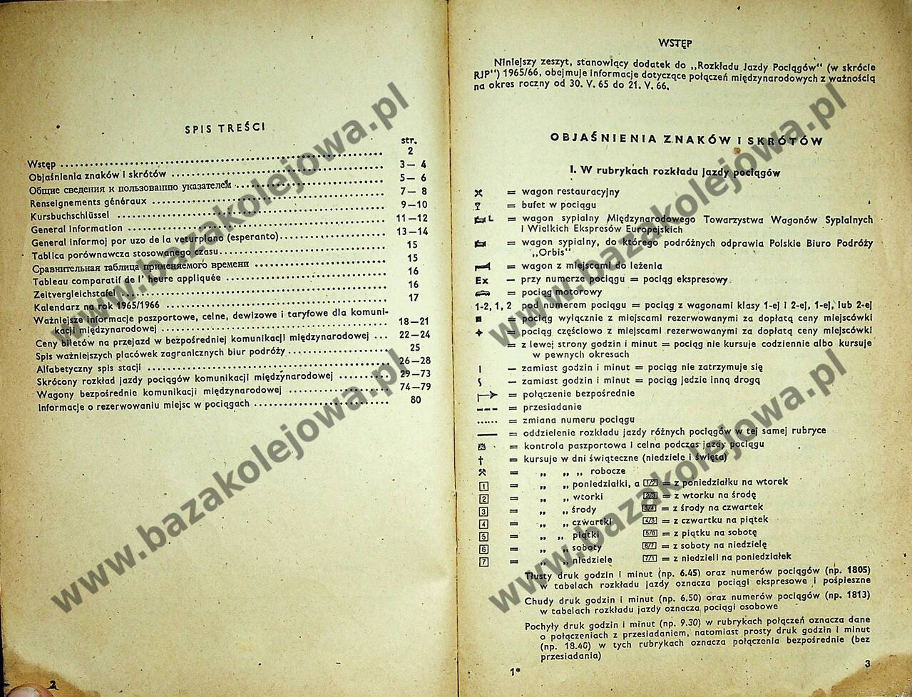 Rozkład jazdy pociągów Połączenia międzynarodowe, 1965-1966