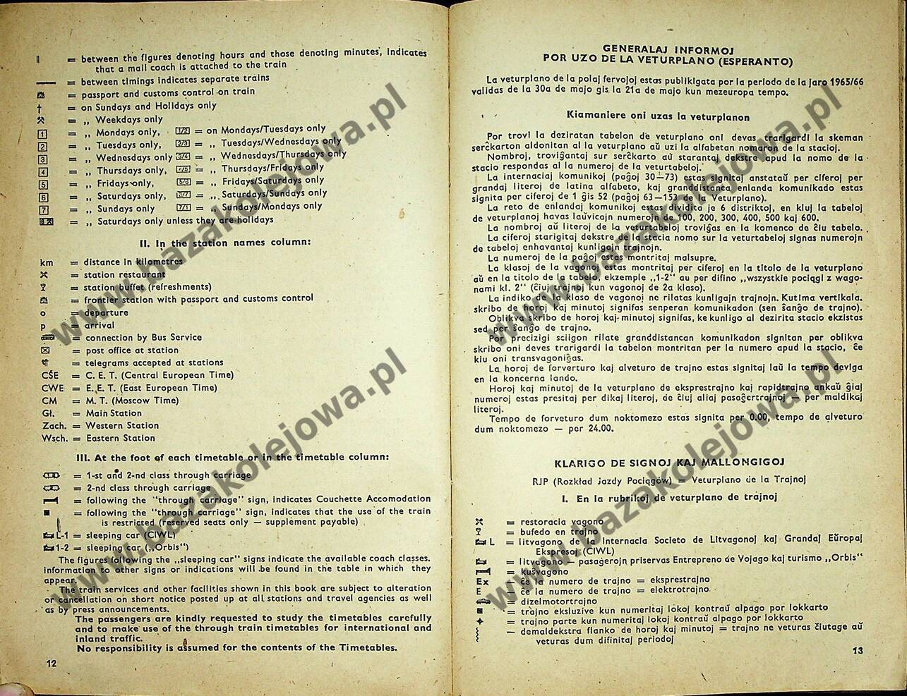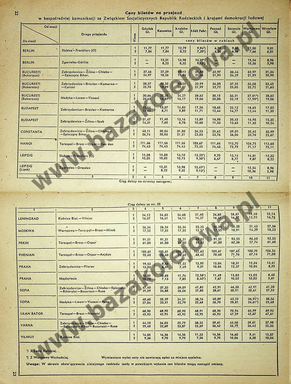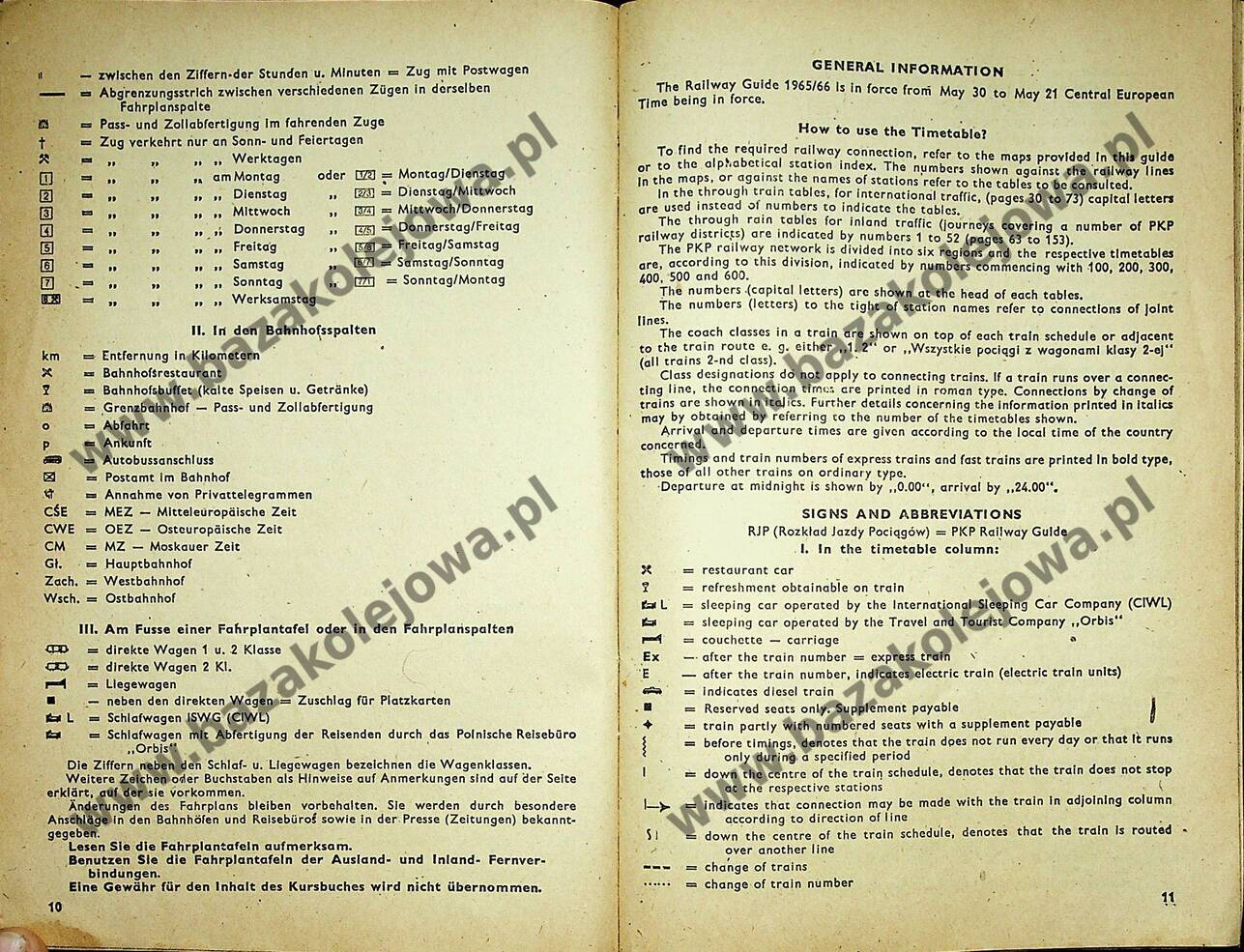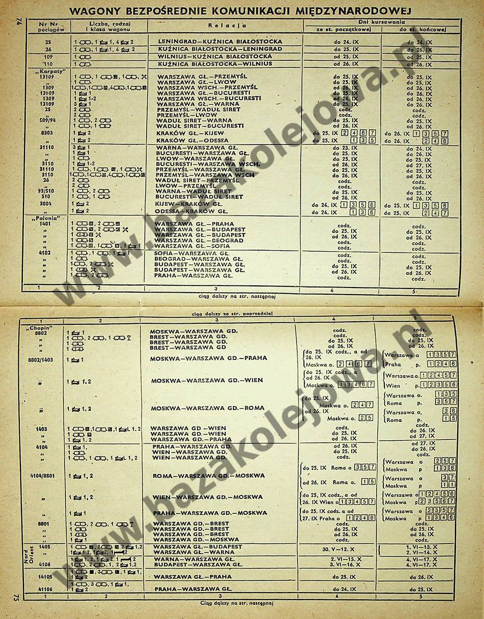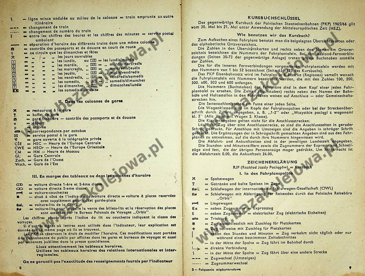 Rozkład jazdy pociągów Połączenia międzynarodowe, 1965-1966