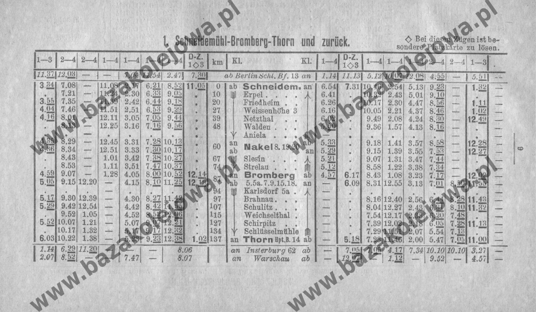 1: Schneidemühl – Bromberg – Thorn | Linie w tabeli »