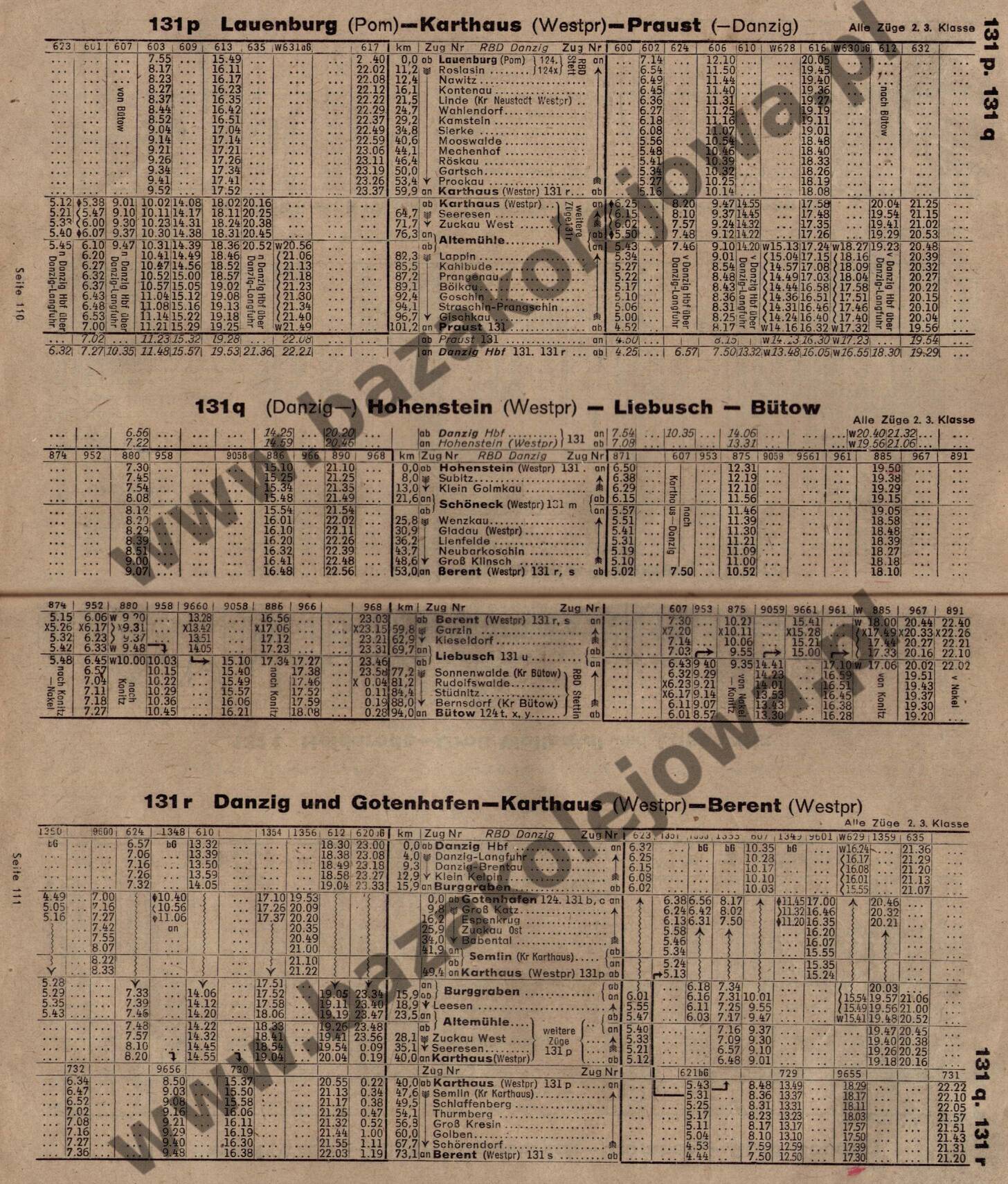 131r: Danzig und Gotenhafen – Karthaus (Westpr) – Berent (Westpr) | Linie w tabeli »