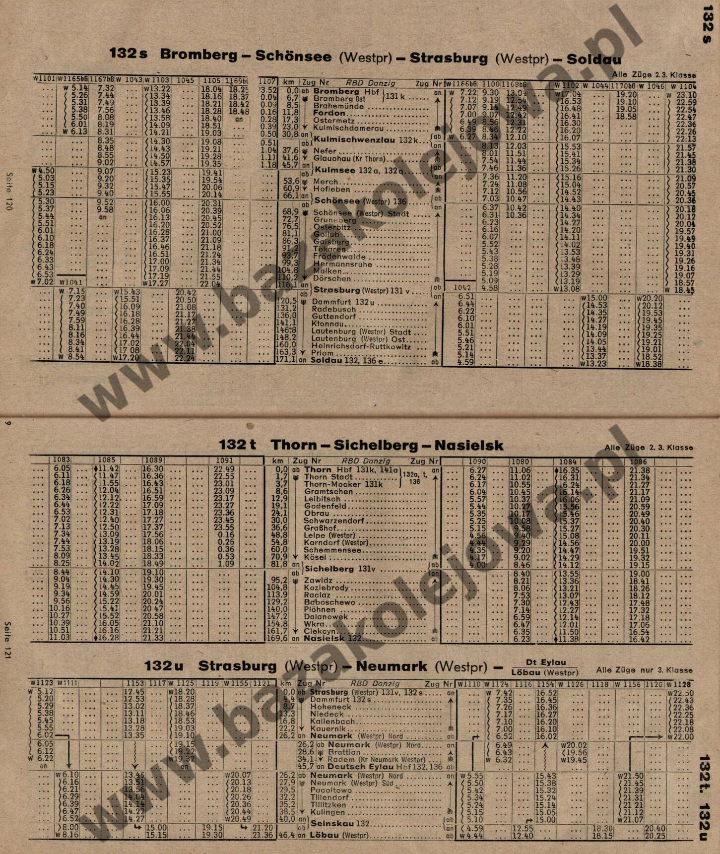 132s: Bromberg – Schönsee (Westpr) – Strasburg (Westpr) – Soldau | Linie w tabeli »