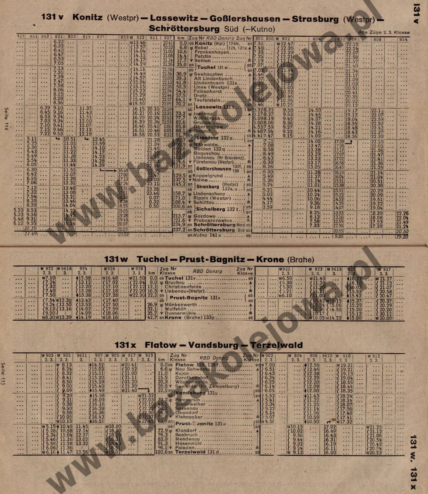 131v: Konitz (Westpr) – Lasswewitz – Goßlershausen – Strasburg (Westpr) – Schröttersburg Süd (– Kutno) | Linie w tabeli »