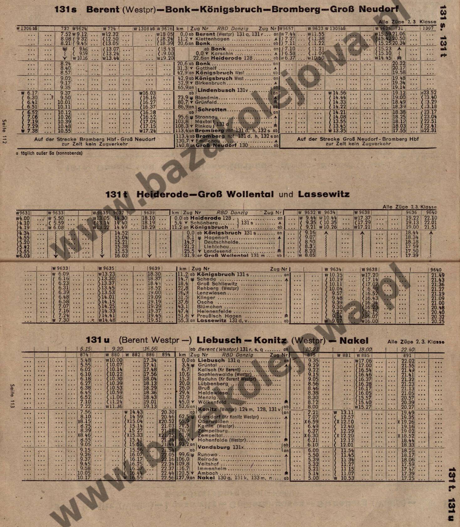 131s: Berent (Westpr) – Bonk – Königsbruch – Bromberg – Groß Neudorf | Linie w tabeli »