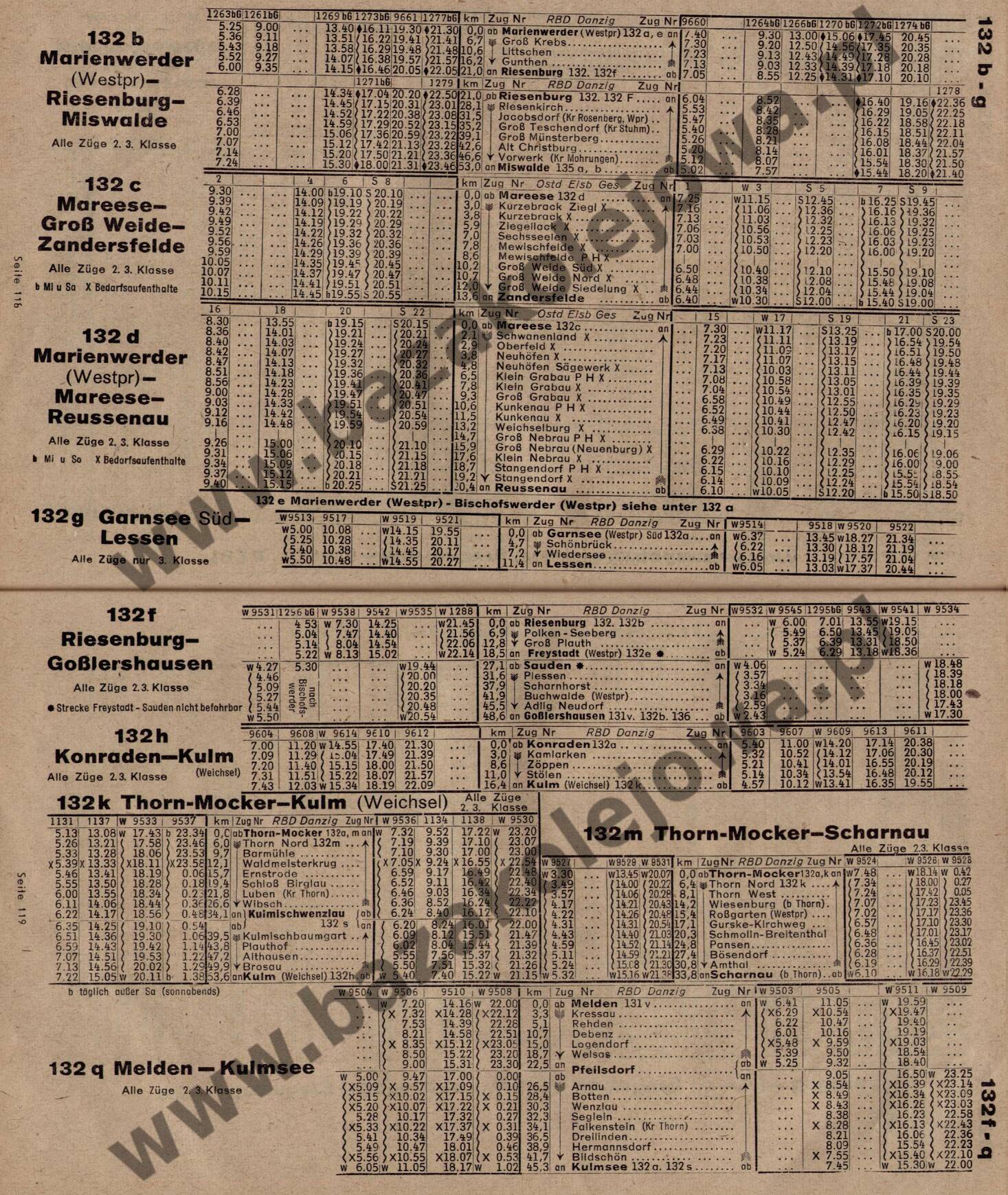 Rozkład Niemcy, lato 1943; część północna, Str. 118-119, Tab. 132b, 132c, 132d, 132f, 132g, 132h, 132k, 132m, 132q