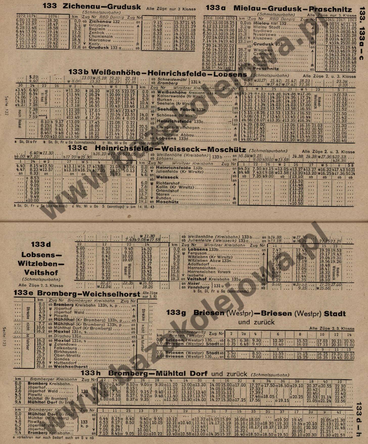 Rozkład Niemcy, lato 1943; część północna, Str. 122-123, Tab. 133, 133a, 133b, 133c, 133d, 133e, 133g, 133h