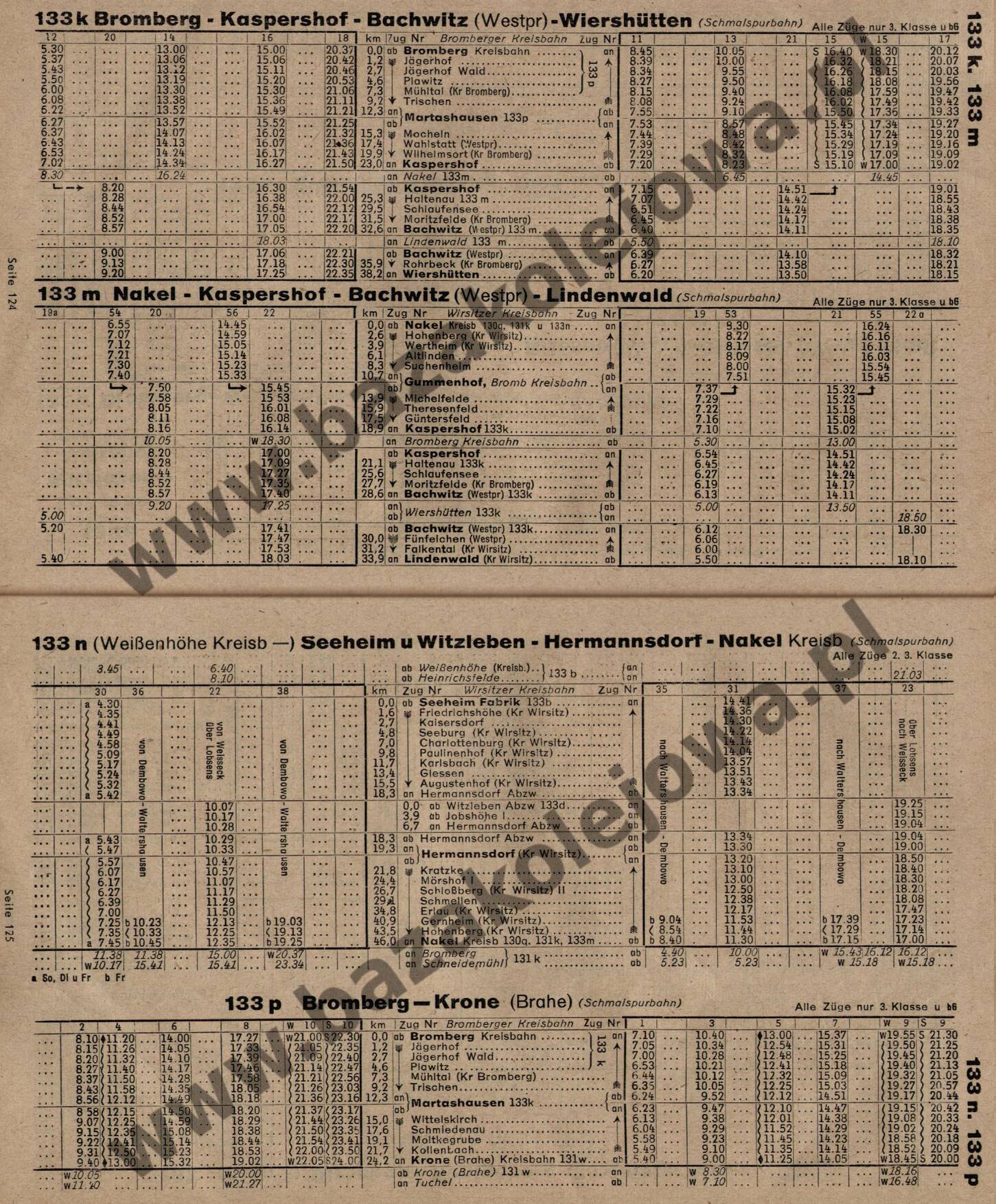 Rozkład Niemcy, lato 1943; część północna, Str. 124-125, Tab. 133k, 133m, 133n, 133p