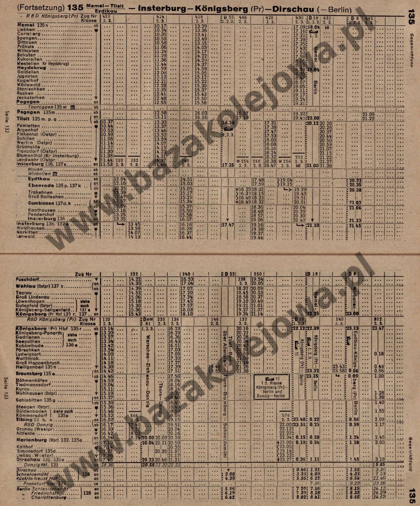 Rozkład Niemcy, lato 1943; część północna, Str. 132-133, Tab. 135