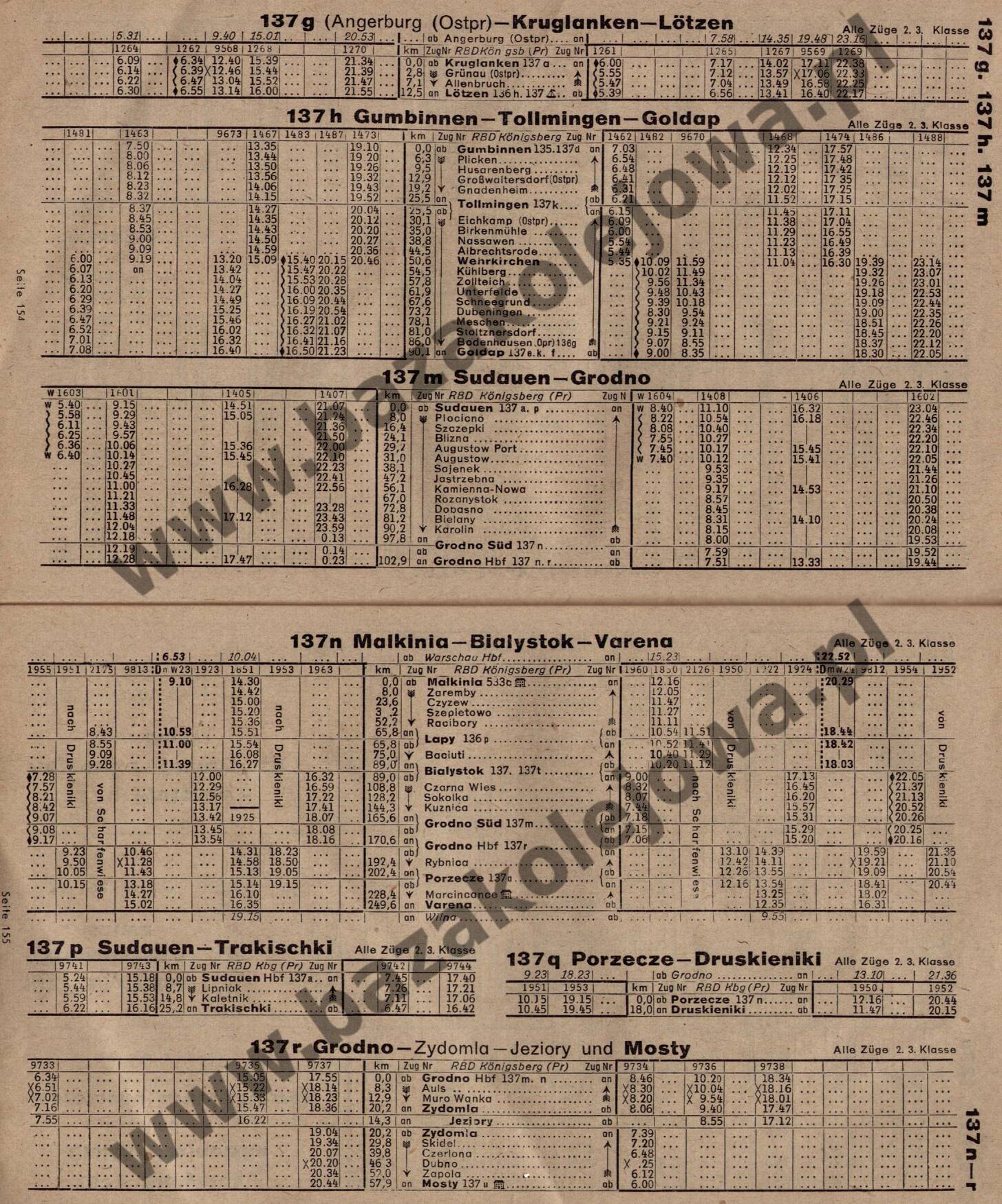 Rozkład Niemcy, lato 1943; część północna, Str. 154-155, Tab. 137g, 137h, 137m, 137n, 137p, 137q, 137r