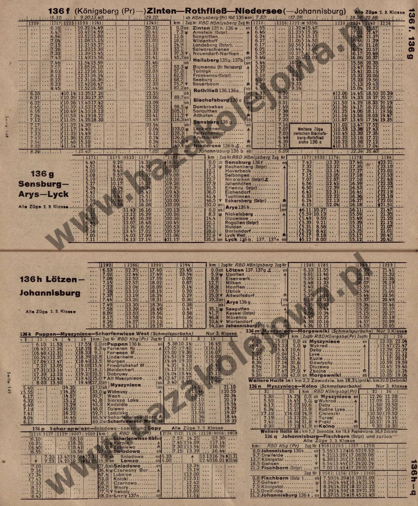 136f: Königsberg (Pr –) Zinten – Rothfließ – Niedersee (– Johannisburg) | Linie w tabeli »