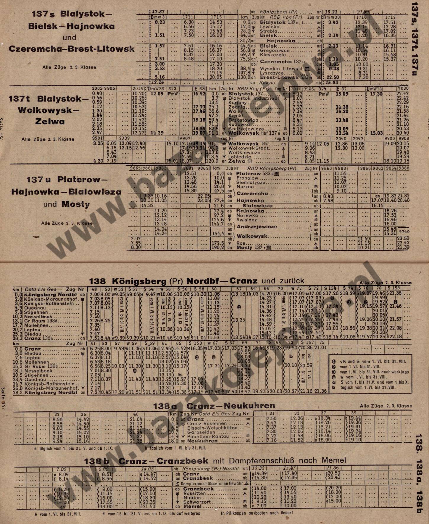 Rozkład Niemcy, lato 1943; część północna, Str. 156-157, Tab. 137s, 137t, 137u, 138, 138a, 138b