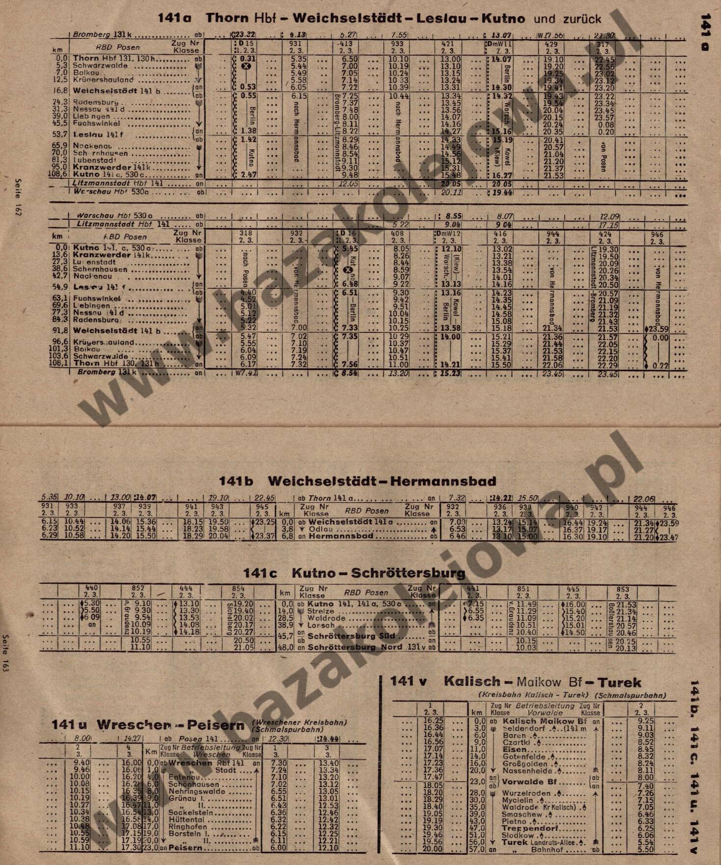 Rozkład Niemcy, lato 1943; część północna, Str. 162-163, Tab. 141a, 141b, 141c, 141u, 141v