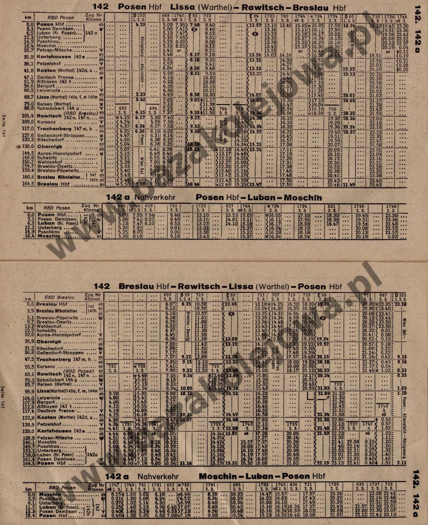Rozkład Niemcy, lato 1943; część północna, Str. 164-165, Tab. 142, 142a
