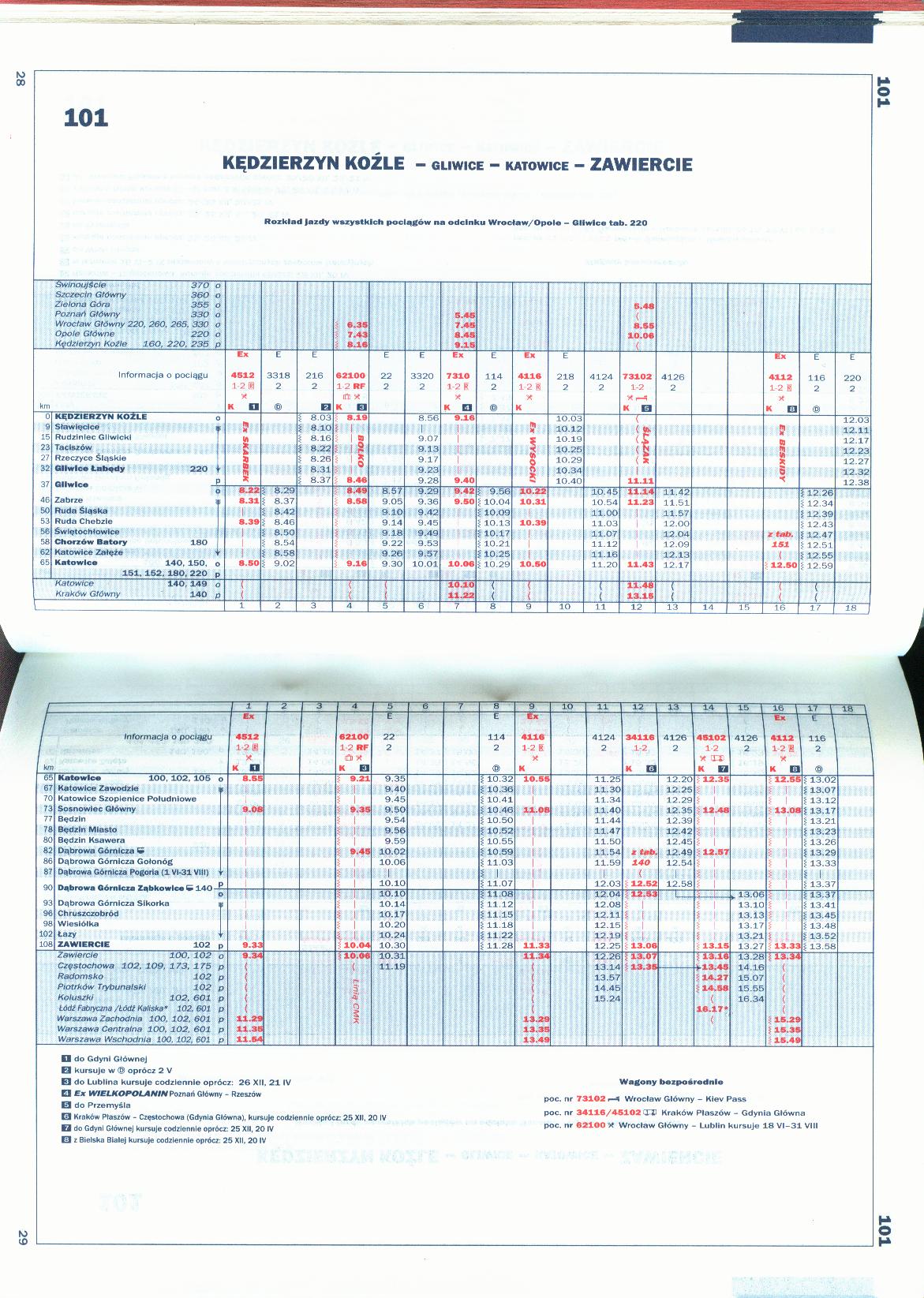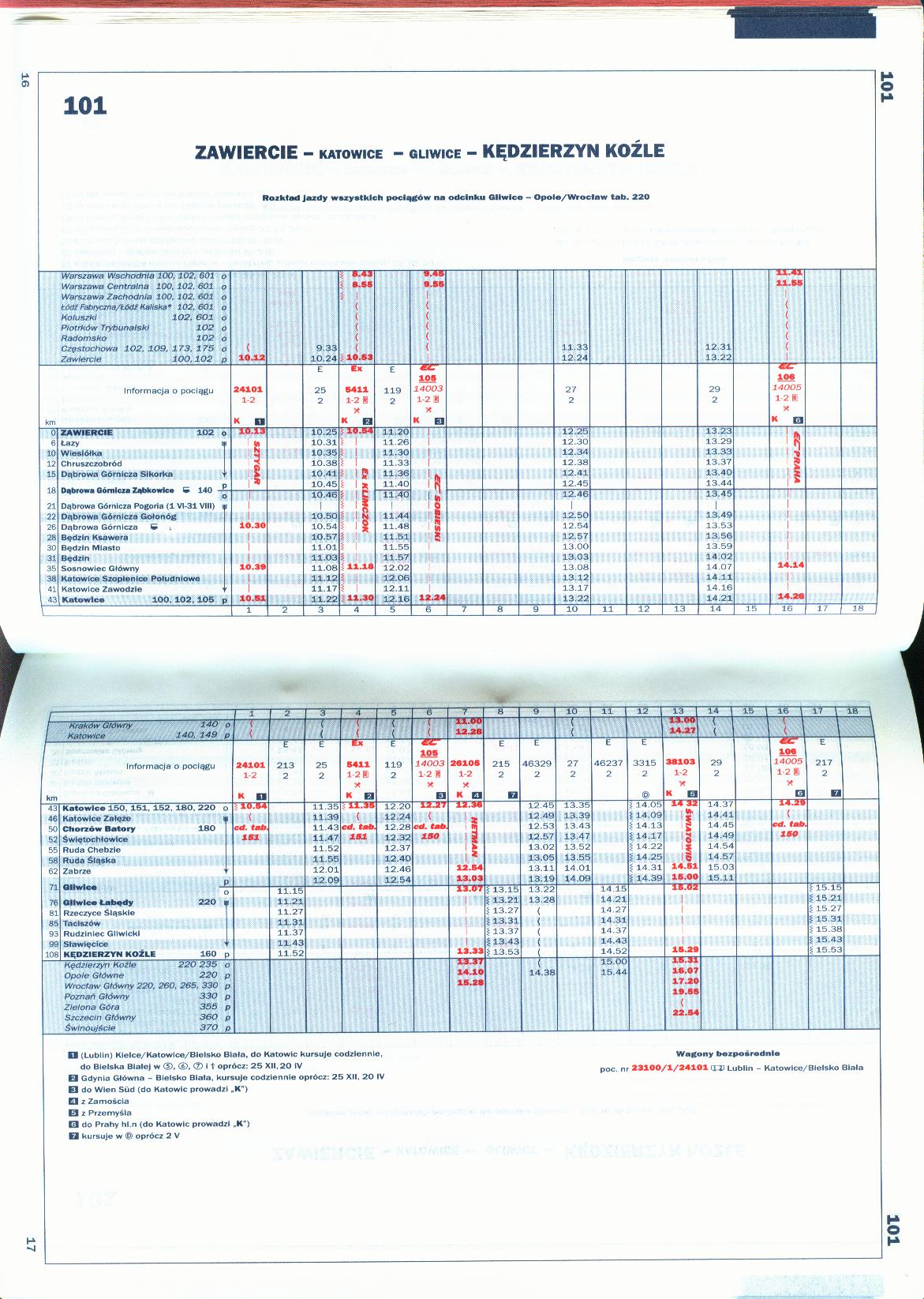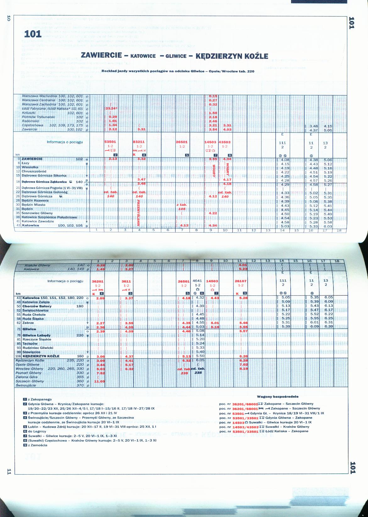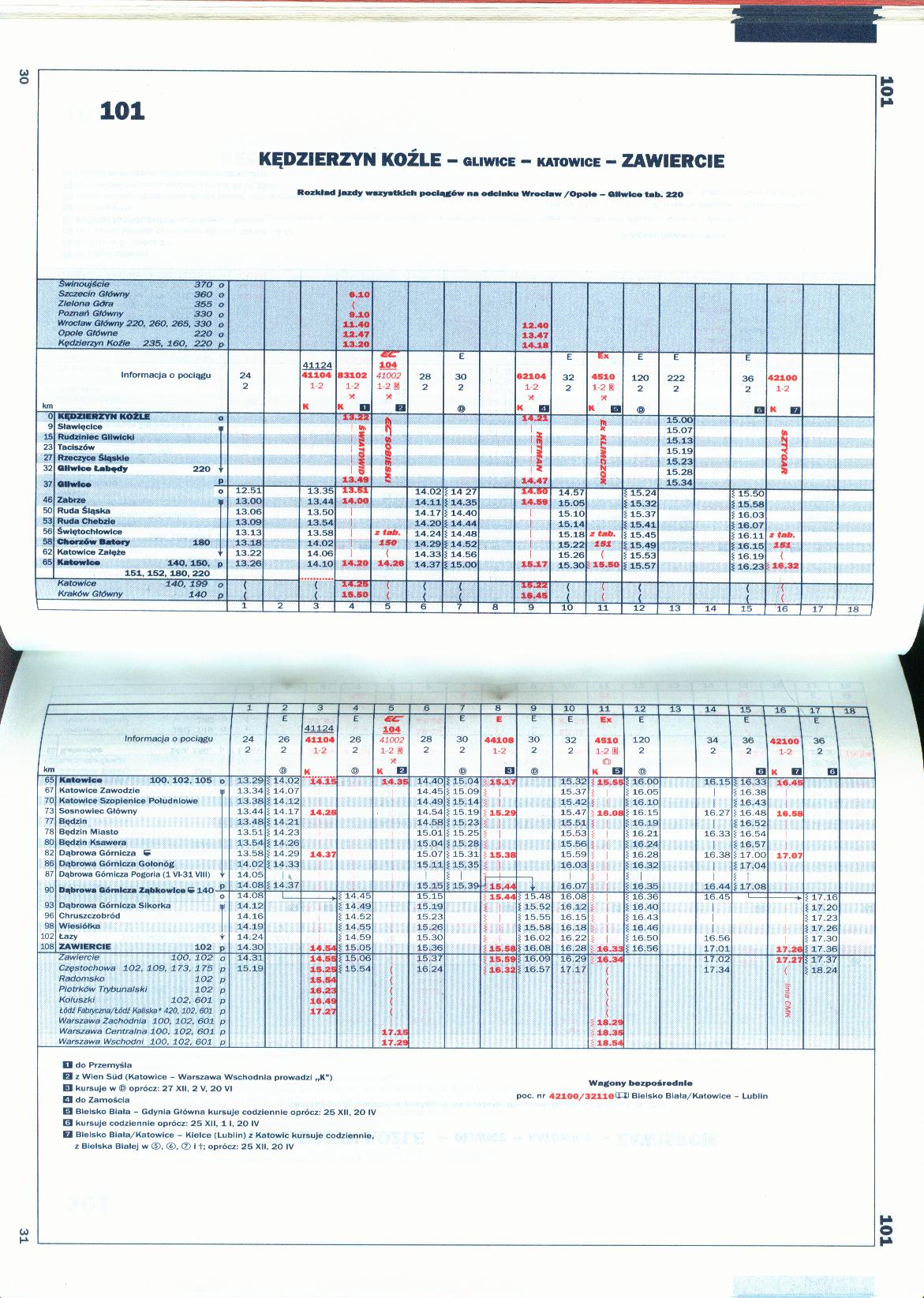101 Zawiercie – Katowice – Gliwice – Kędzierzyn Koźle str. 10 - 11