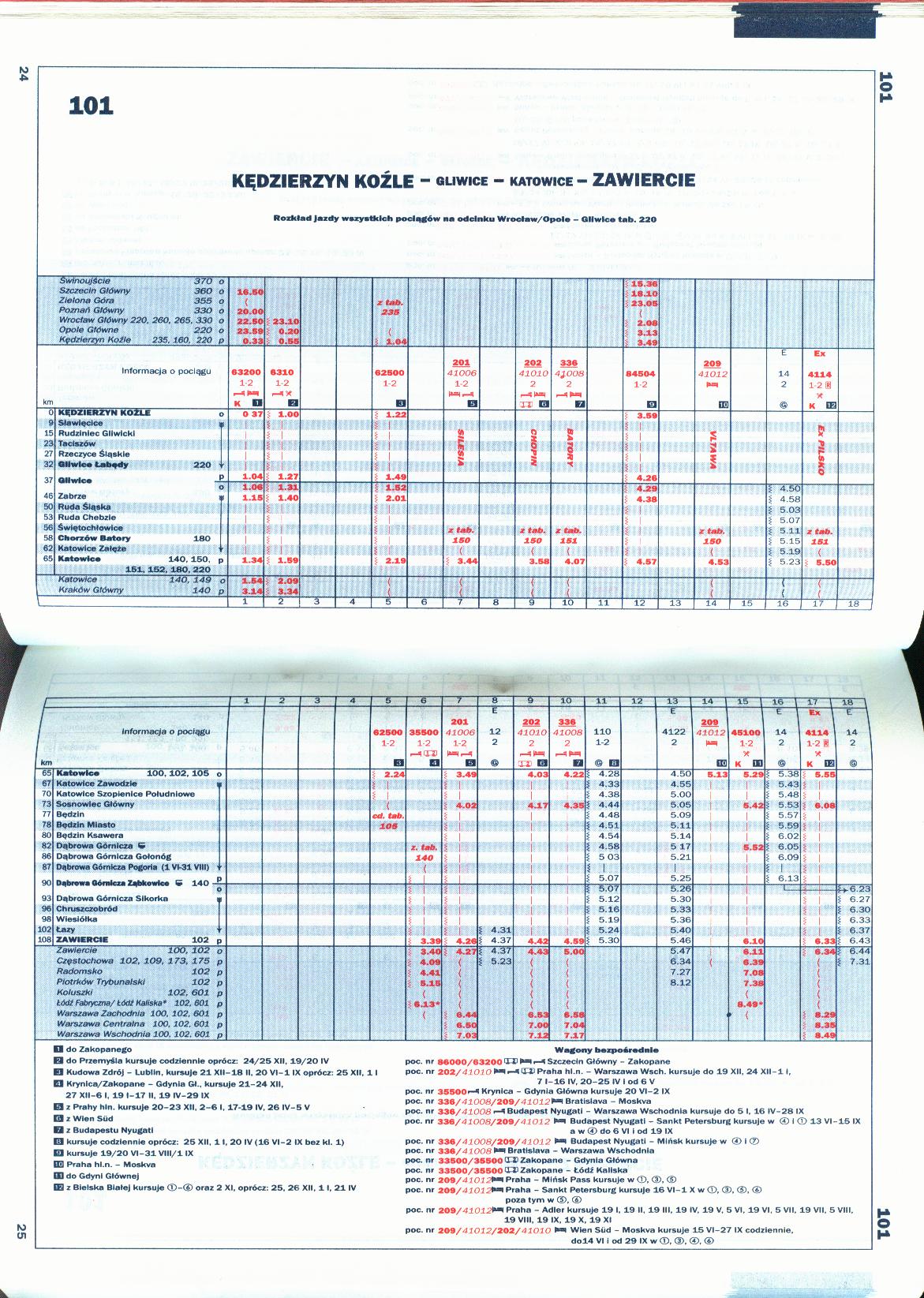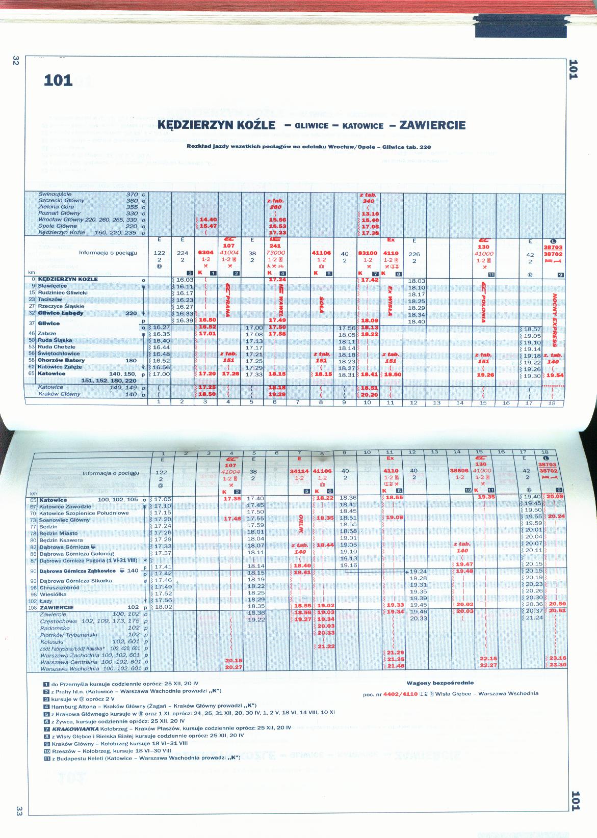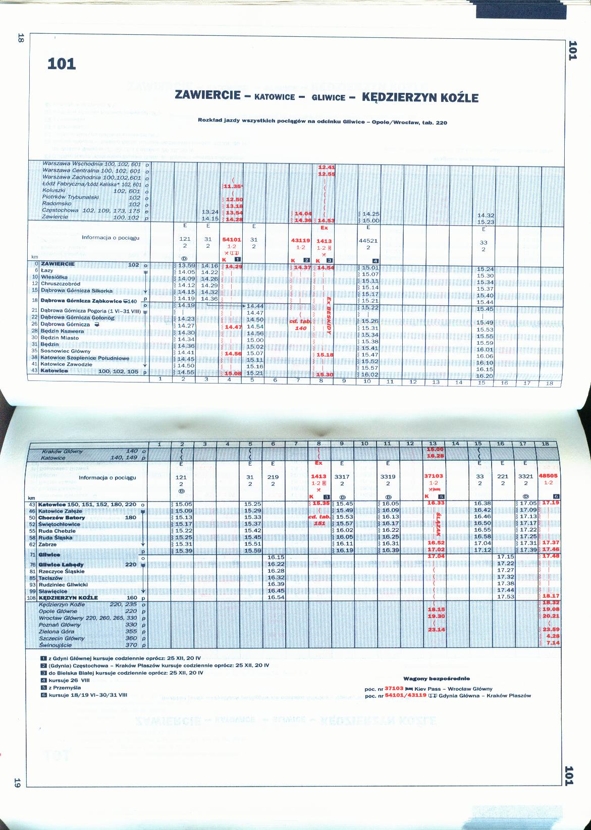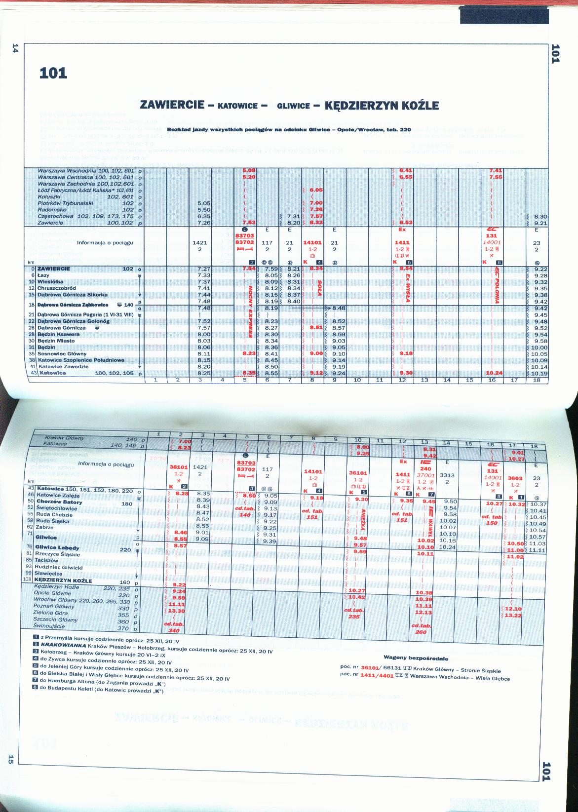 101 Zawiercie – Katowice – Gliwice – Kędzierzyn Koźle str. 10 - 11