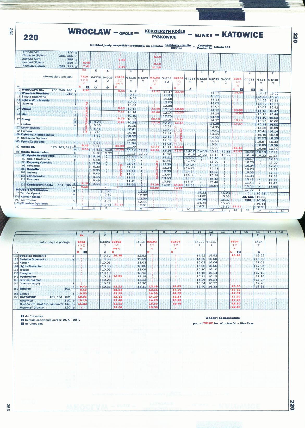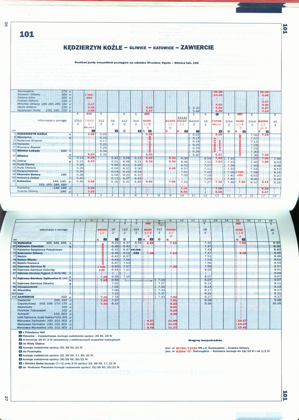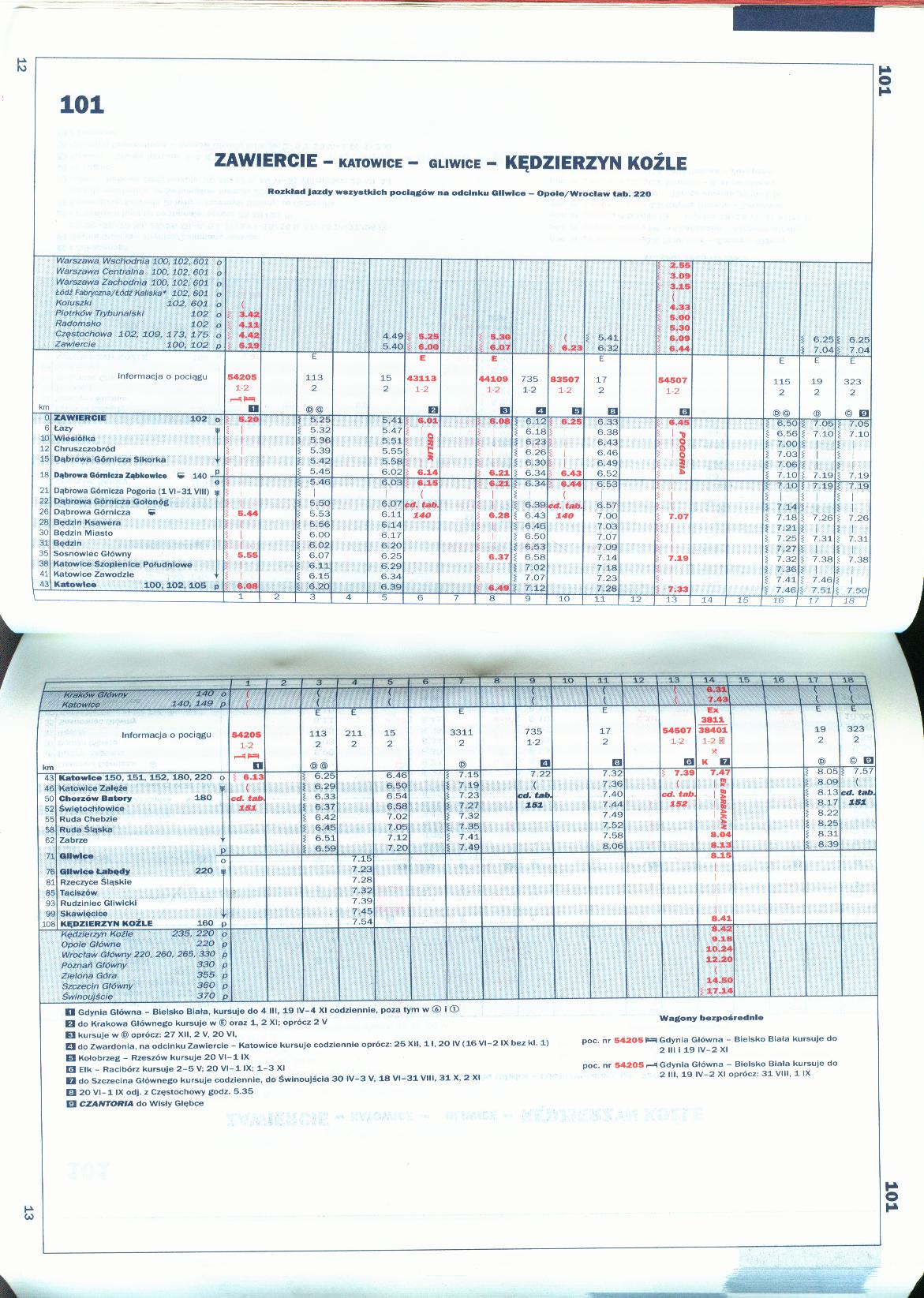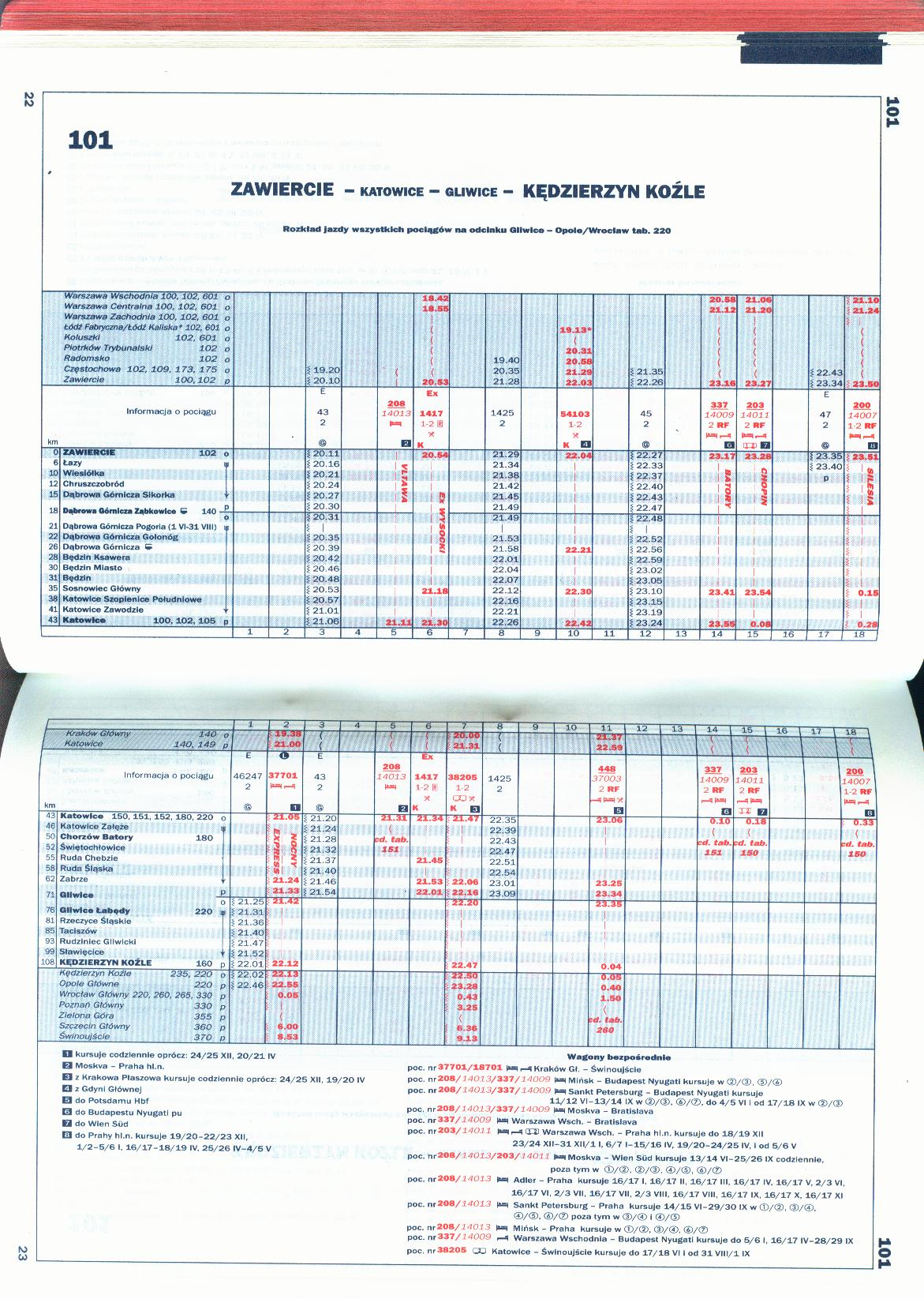101 Zawiercie – Katowice – Gliwice – Kędzierzyn Koźle str. 10 - 11