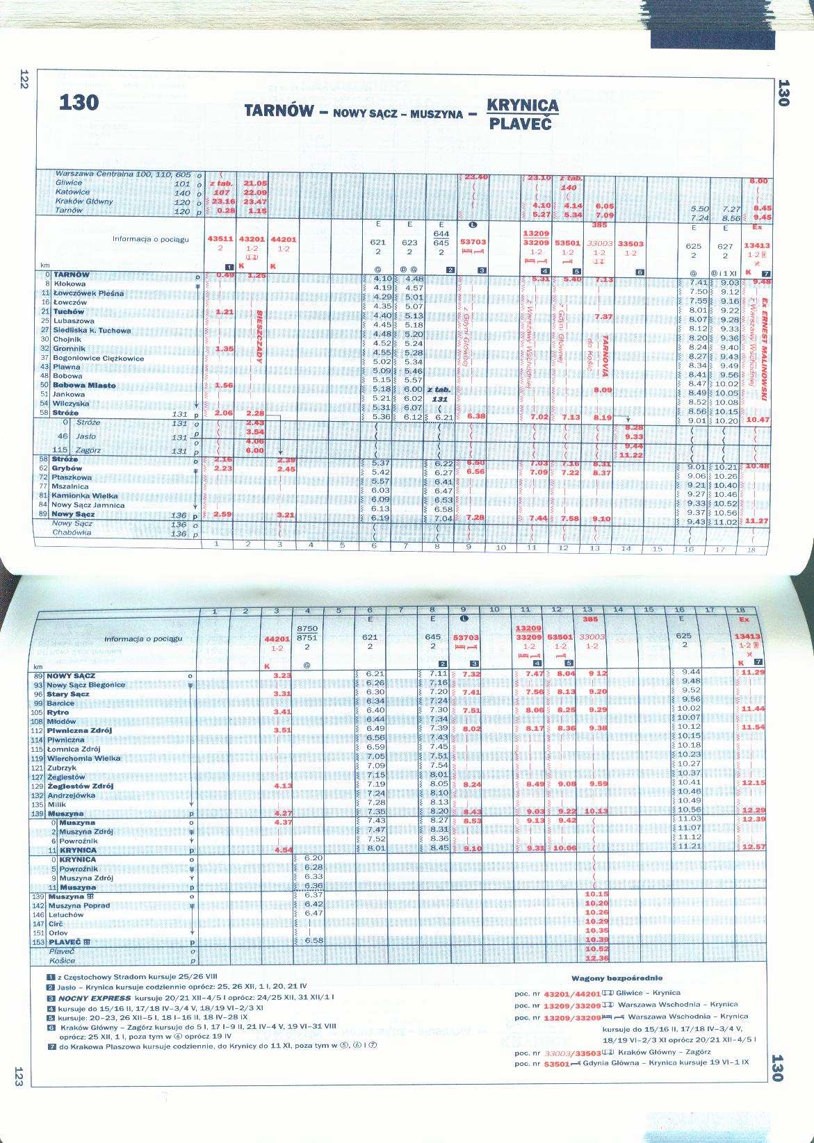 130 Tarnów – Nowy Sącz – Muszyna – Krynica/Plaveč str. 122